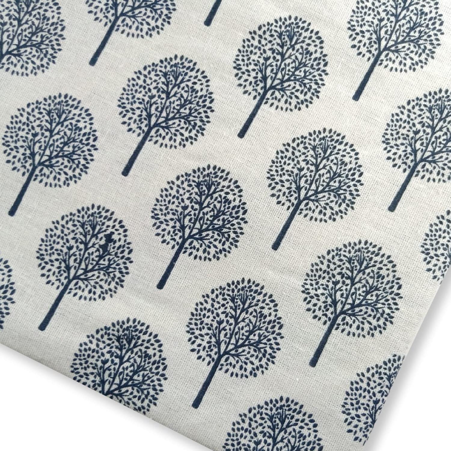 moonfarm 北欧風 ツリー柄 綿麻 生地 選べる3色 長さ約1m 幅約155cm 手芸用 布 裁断済み (ブルー)