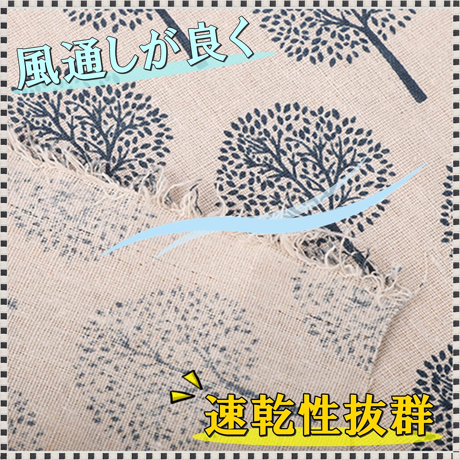 ※お使いのデバイスによっては、実物と若干色合いが異なる画像が表示される場合がございます。色落ちする場合がございますので、色移りにご注意ください。綿麻生地は天然繊維からできており、独特の糸フシやネップがある事があります。