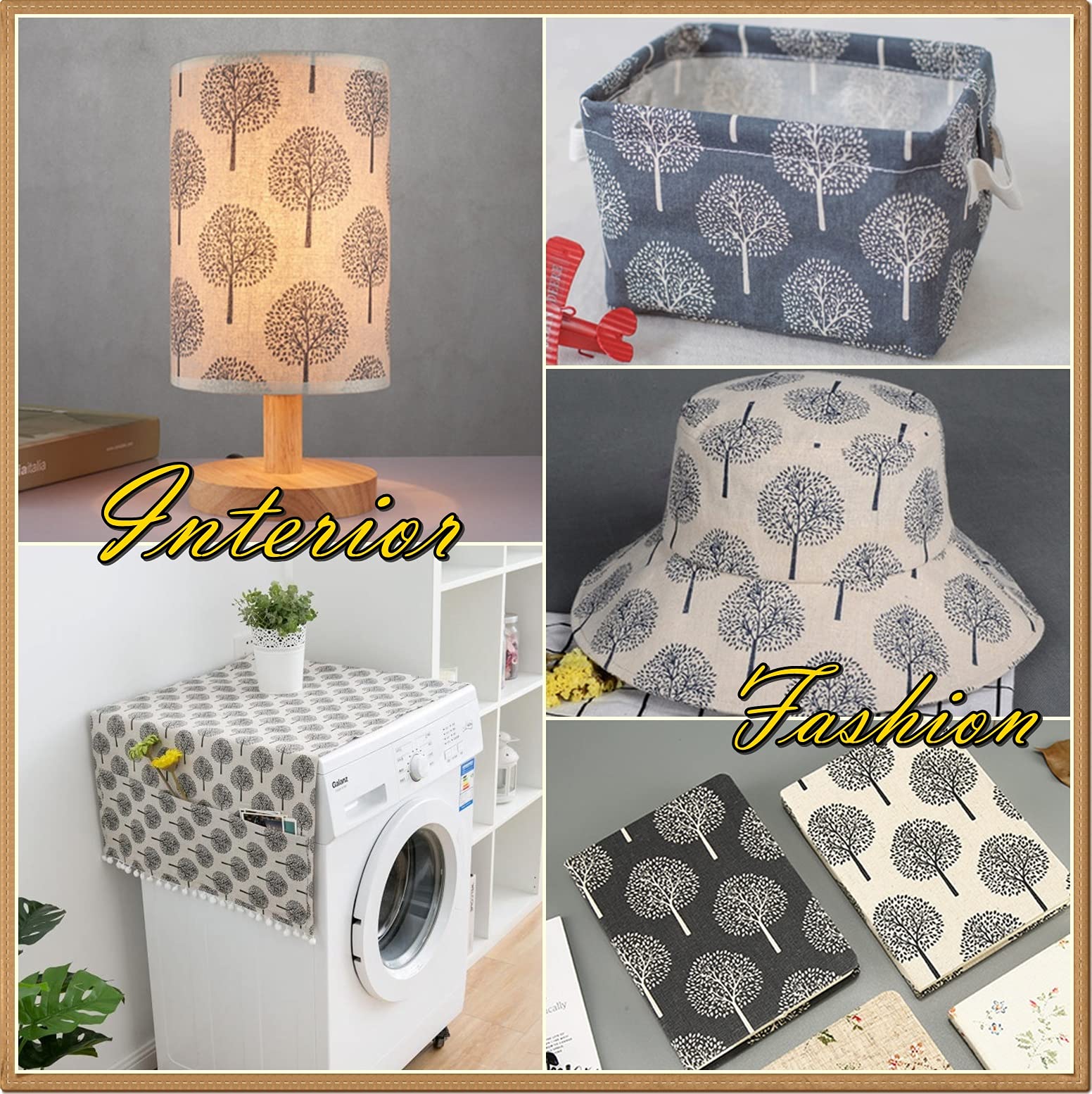 オシャレで人気な北欧風のツリー柄 コットンリネンプリント生地 長さ:約1m×幅1.55m裁断済み 重量:約300g 素材:綿麻(コットンリネン)
