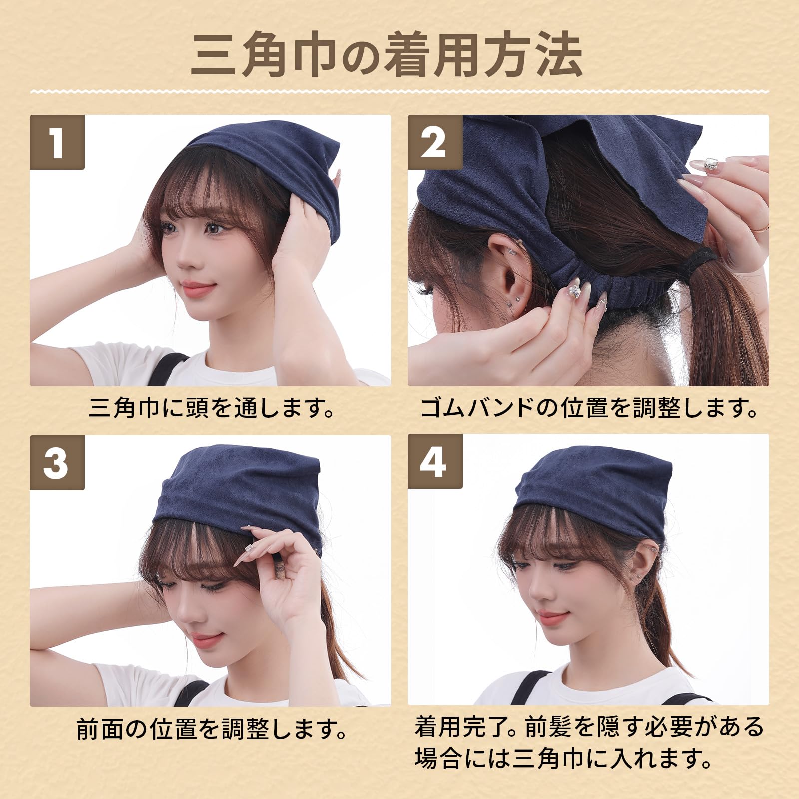 三角巾 大人用 ゴムバンドで簡単着用 (ブラック, 大人用)