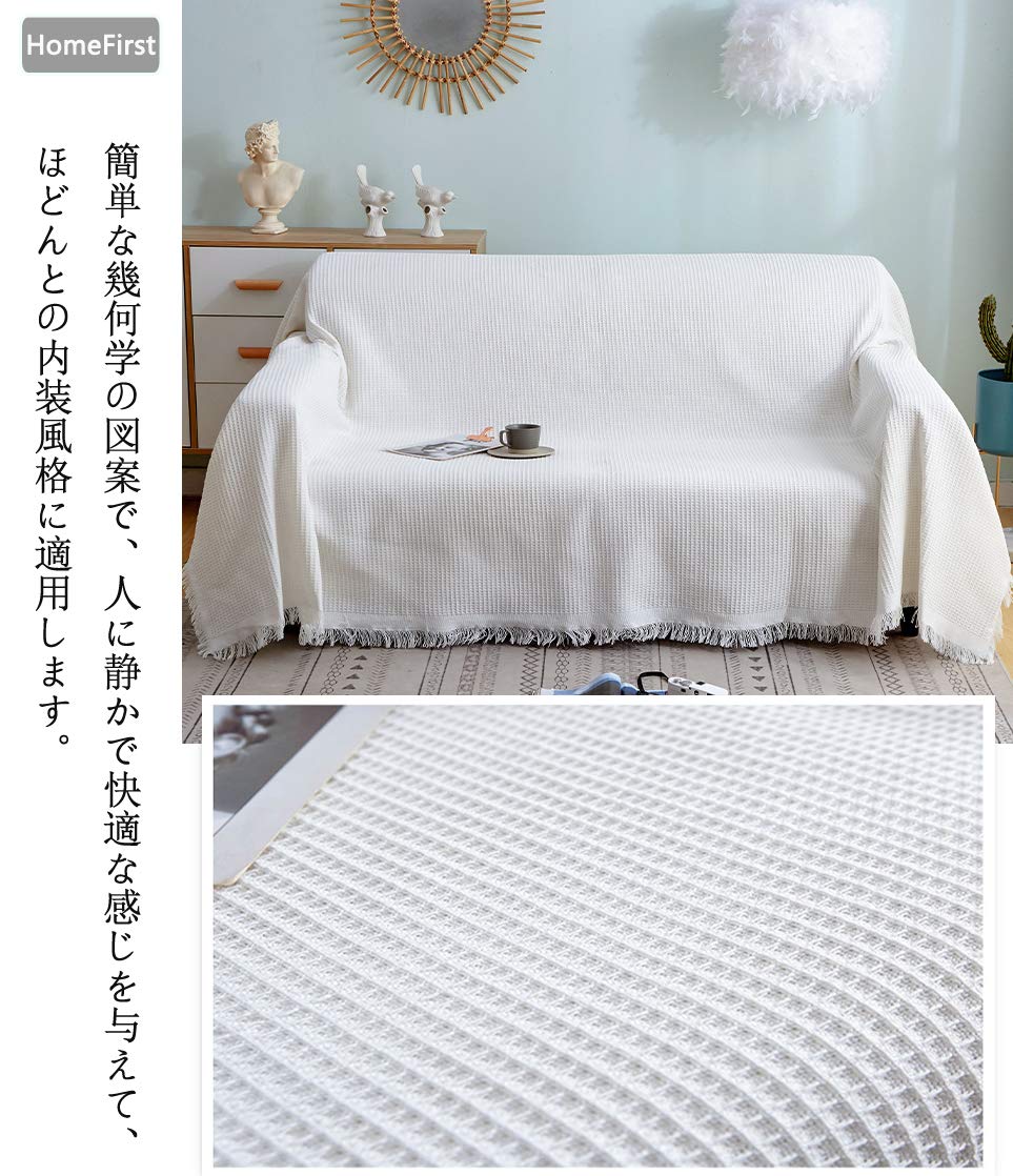 北欧風 マルチカバー 長方形 130*180cm ソファーカバー 1 2 人掛け おしゃれ ブランケット フリンジ付き 綿 ベッドカバー カウチ ベッドカバー 毛布 テーブルクロス 無地 両面使える 水洗い 四季通用 (ワッフル柄)