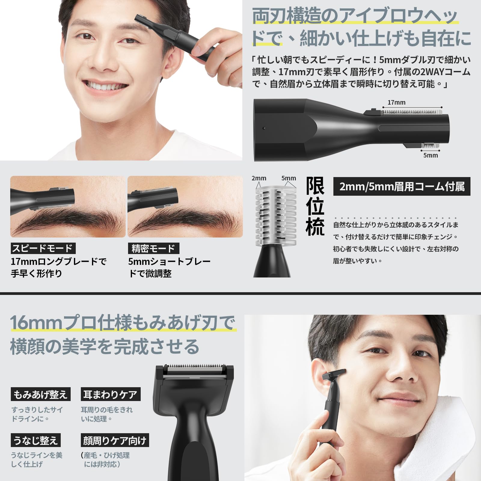 【人気】鼻毛カッター 眉毛シェーバー 耳毛カッター 【2025年新モデル・1台4役/Type-C充電式/防水/低騒音】鼻毛・眉毛・耳毛・フェイスケア メンズ レディース 小型 旅行用 携帯便利 日本語説明書付き 電動シェーバー