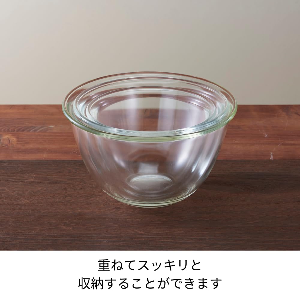 HARIO(ハリオ) レンジフタ付き 耐熱ガラス製 ボウル 3個セット 900ml 1500ml 2200ml BUONO kitchen マルチ ボール クリア 日本製 MXPF-4904-W