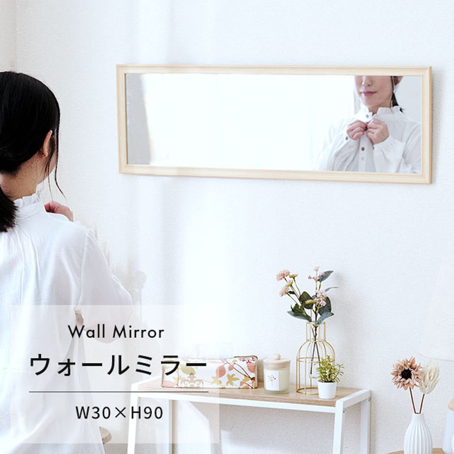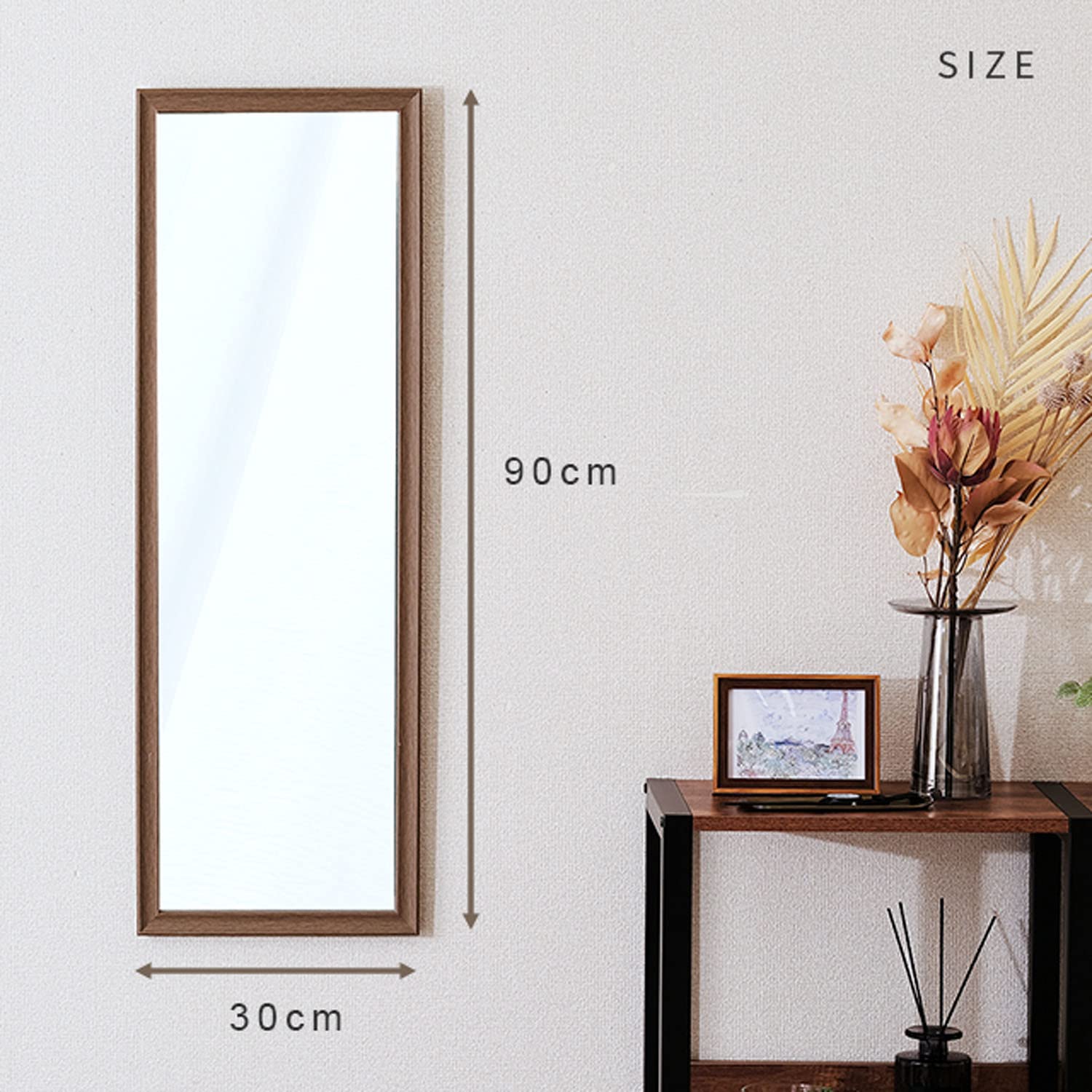 【特価処分】ドウシシャ ウォールミラー 縦でも横でも使える壁掛けミラー 90cm×30cm 飛散防止加工 軽量 姿見鏡 北欧 おしゃれ かわいい 木製フレーム 取付金具 玄関 洗面所 化粧 アンティーク 立て掛けるだけでもOK ブラウン IMW9030BR