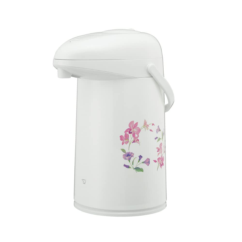 象印マホービン ガラスエアーポット 3.0L 押すだけポット 真空断熱構造 おいしく保温・保冷 リースフラワー AB-RC30-FW かる~い力でラクラク給湯。 色:リースフラワー サイズ:3 L 材質:ポリプロピレン(PP) 商品重量:1.96 キログラム かる〜い力でラクラク給湯。