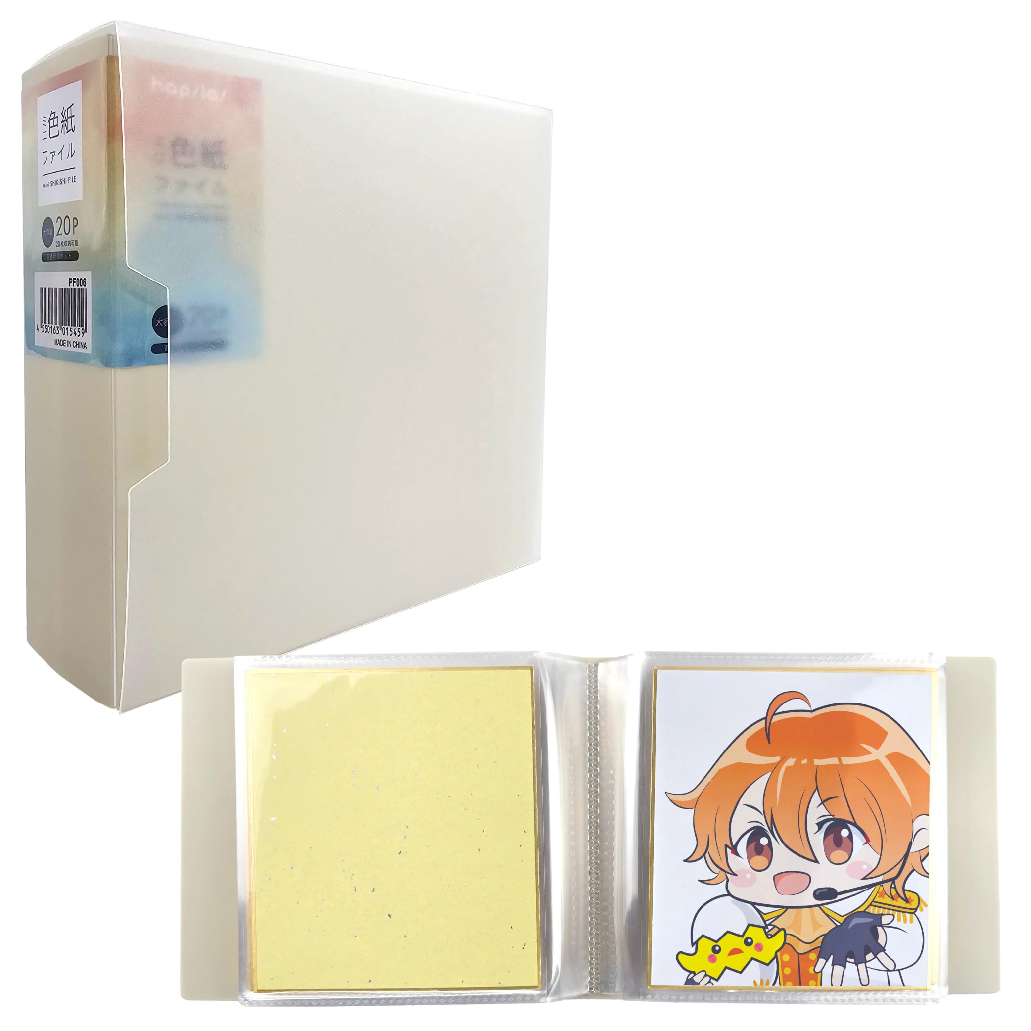 【特価処分】ハピラ ミニ色紙ファイル 20ポケット 大容量 20枚収納 ケース付き 136×121mmミニ色紙対応 クリアファイル ポケットファイル 寸松庵 オフホワイト PF006