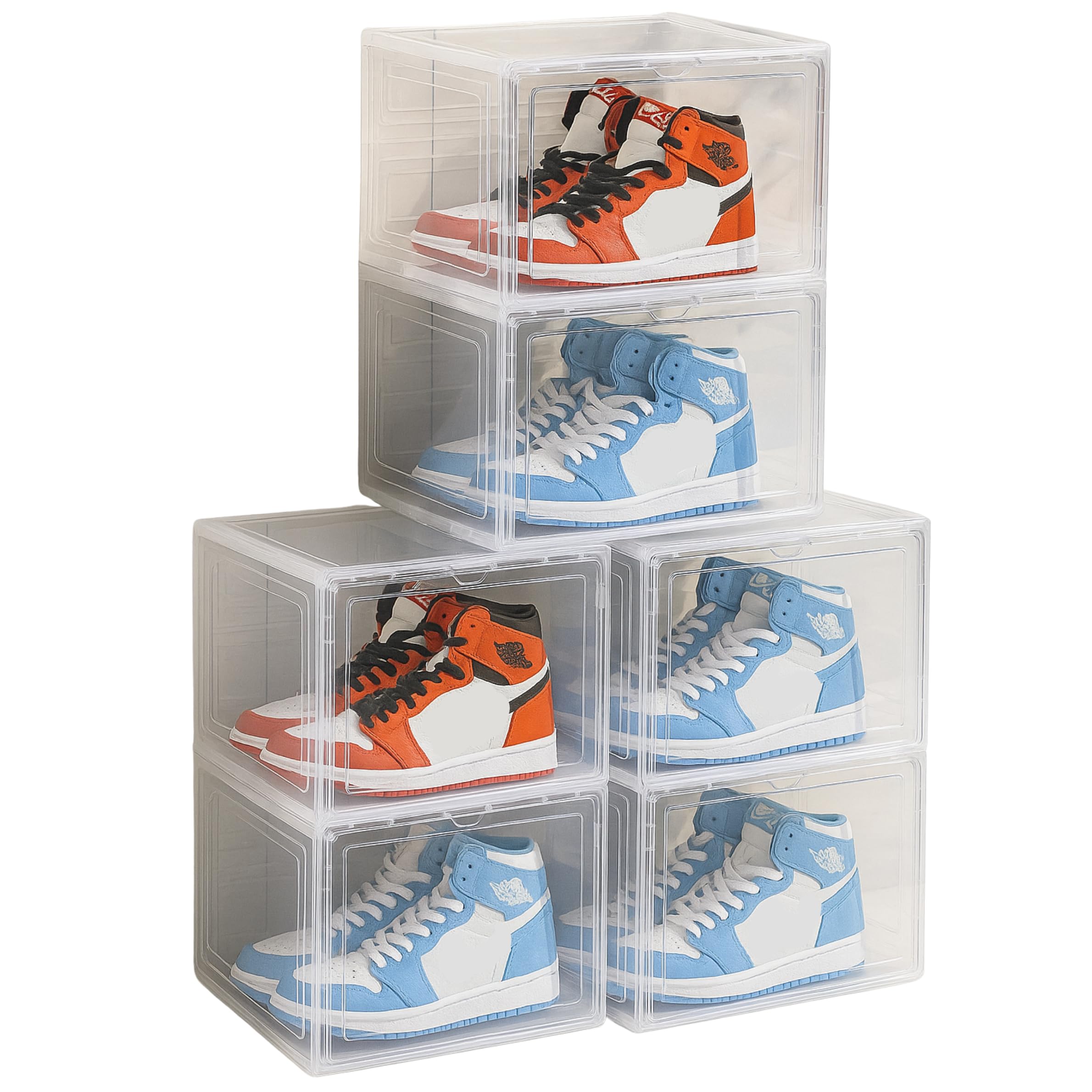 シューズボックス [ 全面 クリア ] 観賞用のスニーカーケースとして 靴収納 クリアケース シューズ入れ 磁石 扉 側開き 靴箱 組み立て簡単 透明 (ホワイト 6個セット)