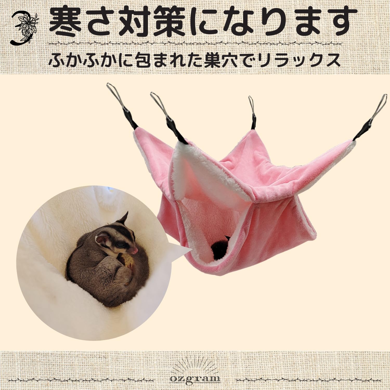 【人気】ハンモック 【ピンク】 【Lサイズ 30×30㎝】 寝床 ブランコ 隠れ家 遊び場 ベッド ケージ 吊り下げ フック 金具付 小動物用 保温対策