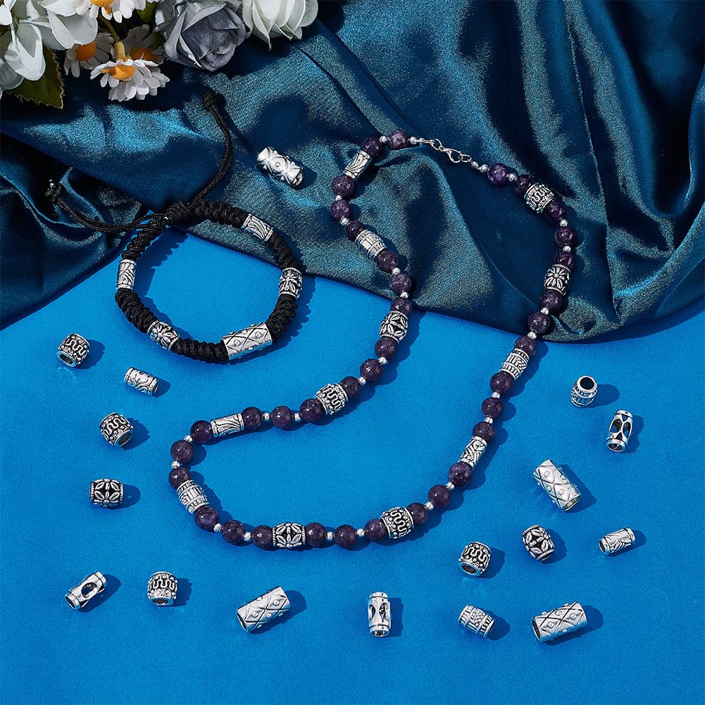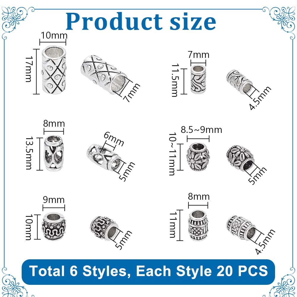PH PandaHall 約120個 6種 スペーサービーズ 大穴ビーズ チベット風 ブレスレットネックレスDIYジュエリー作り 鉛フリー カドミウムフリー アクセサリーパーツ DIY用 手芸材料 手作り素材 アンティークシルバー