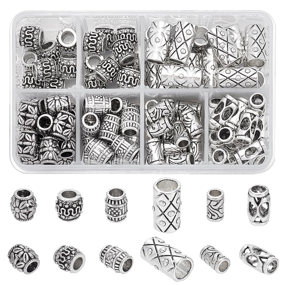 サイズ:直径約7?11mm、長さ8?16mm、穴:5?5mm未満のコードまたはワイヤに適合する4.5?5mm、ヨーロッパスタイルのジュエリーに適合する大きな穴の金属スペーサービーズ。