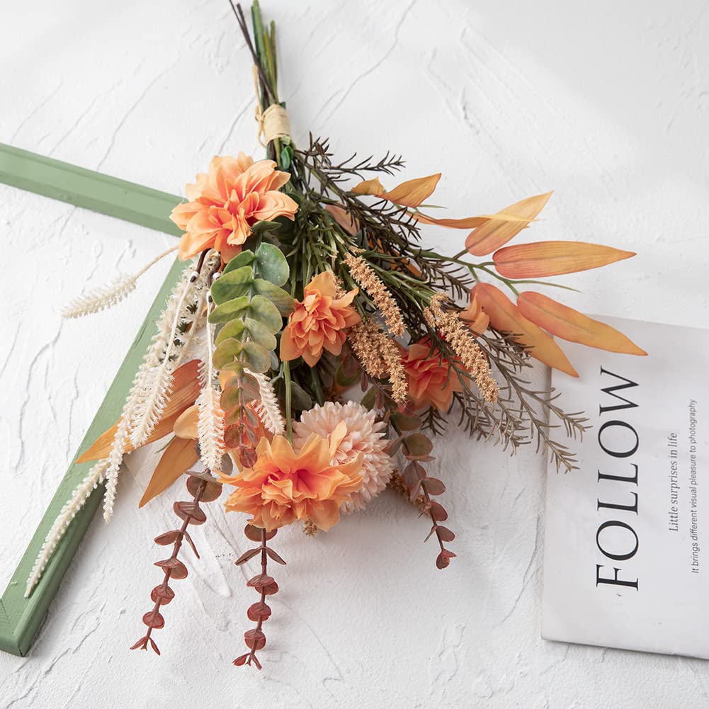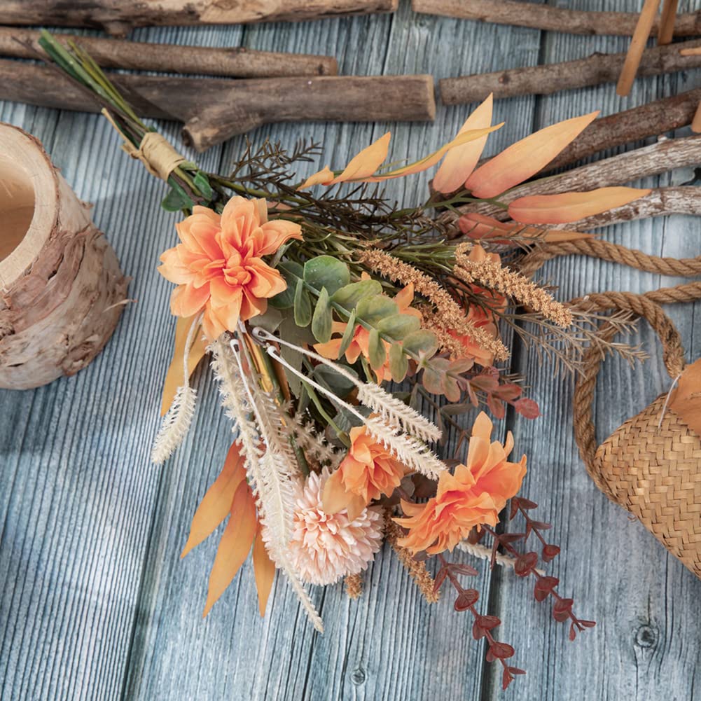 WillingYou オリジナル 造花 ブーケ はなたば Flower アーティフィシャルフラワー 観葉植物 インテリア おしゃれ 秋の色 秋飾り 母の日 プレゼント ダリア 紅葉 蒲公英 ユーカリ 1束