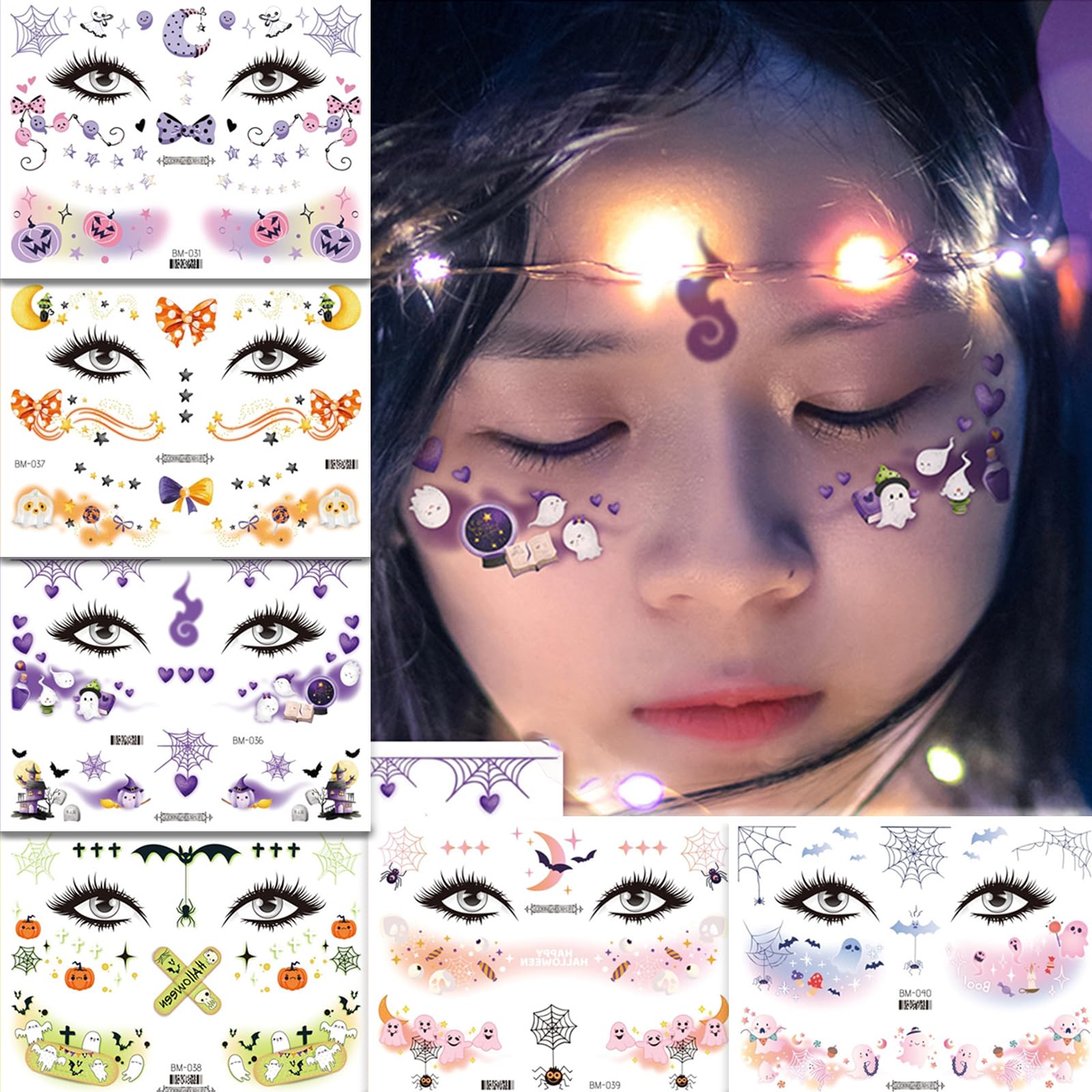 【人気】FINGOOO ハロウィン タトゥーシール フェイス 顔全体 6枚セット 刺青 テッカー シール かわいい 傷 小物 仮装 メイク 縫い傷 爪裂き 傷跡 (D)