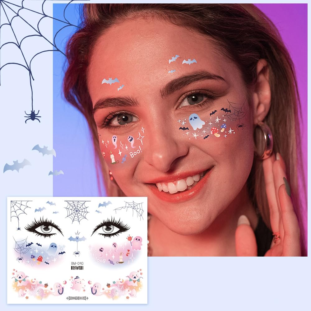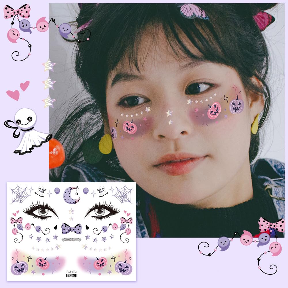 ハロウィンデサイン:ハロウィンの仮装に使えるフェイスタトゥーシールです。手軽に楽しめるためるだけでなく、シンプルな服装も、タトゥーがあるだけでおしゃれに演出できます。