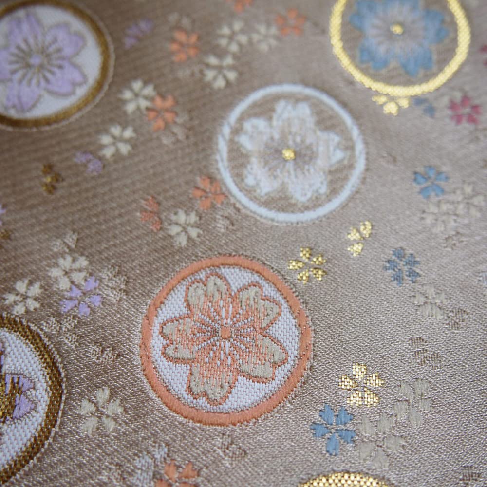 桜が散りばめれらたかわいい柄。金らんの格式高い生地になります。