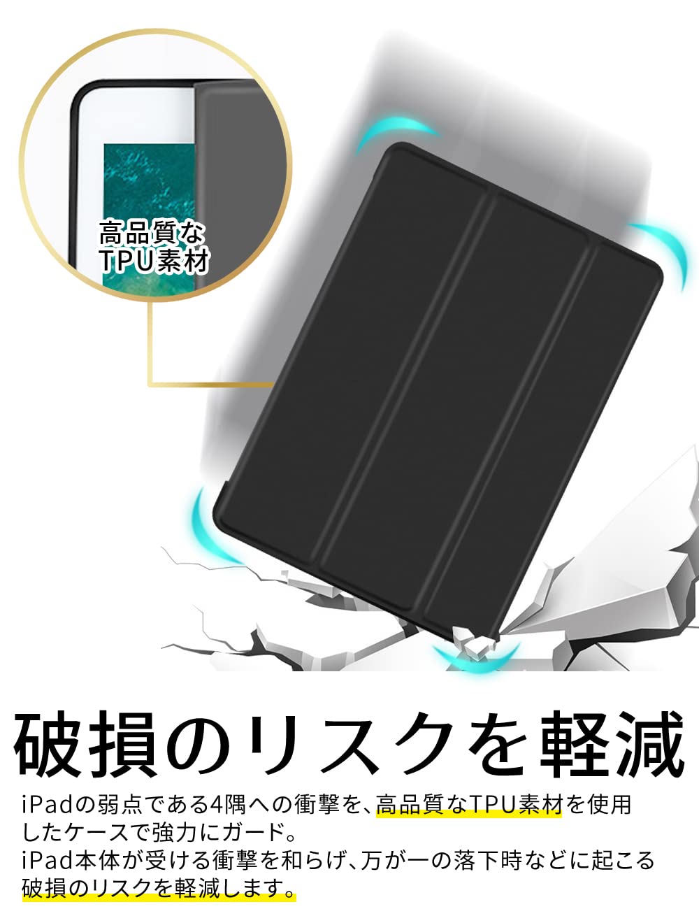 【破損リスクの軽減】しなやかなTPU素材を採用しiPad本体が受ける衝撃を和らげてくれます