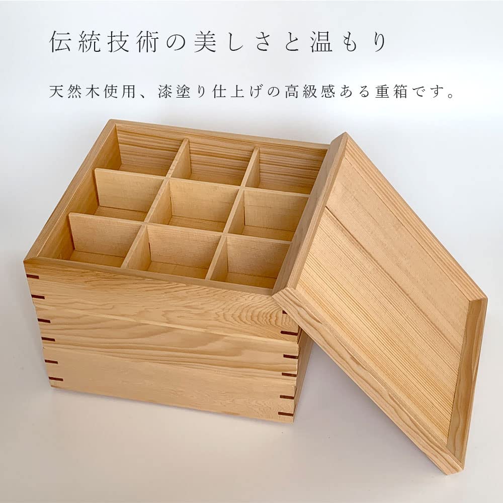 【季節行事から日常使いまで幅広く活躍】 おせち料理や運動会、遠足、行楽などの特別な日にぴったりの重箱ですが、普段のお弁当や自宅パーティー、おもてなし料理にもおすすめ。和洋どちらの料理にも合うため、幅広いシーンで活躍します。
