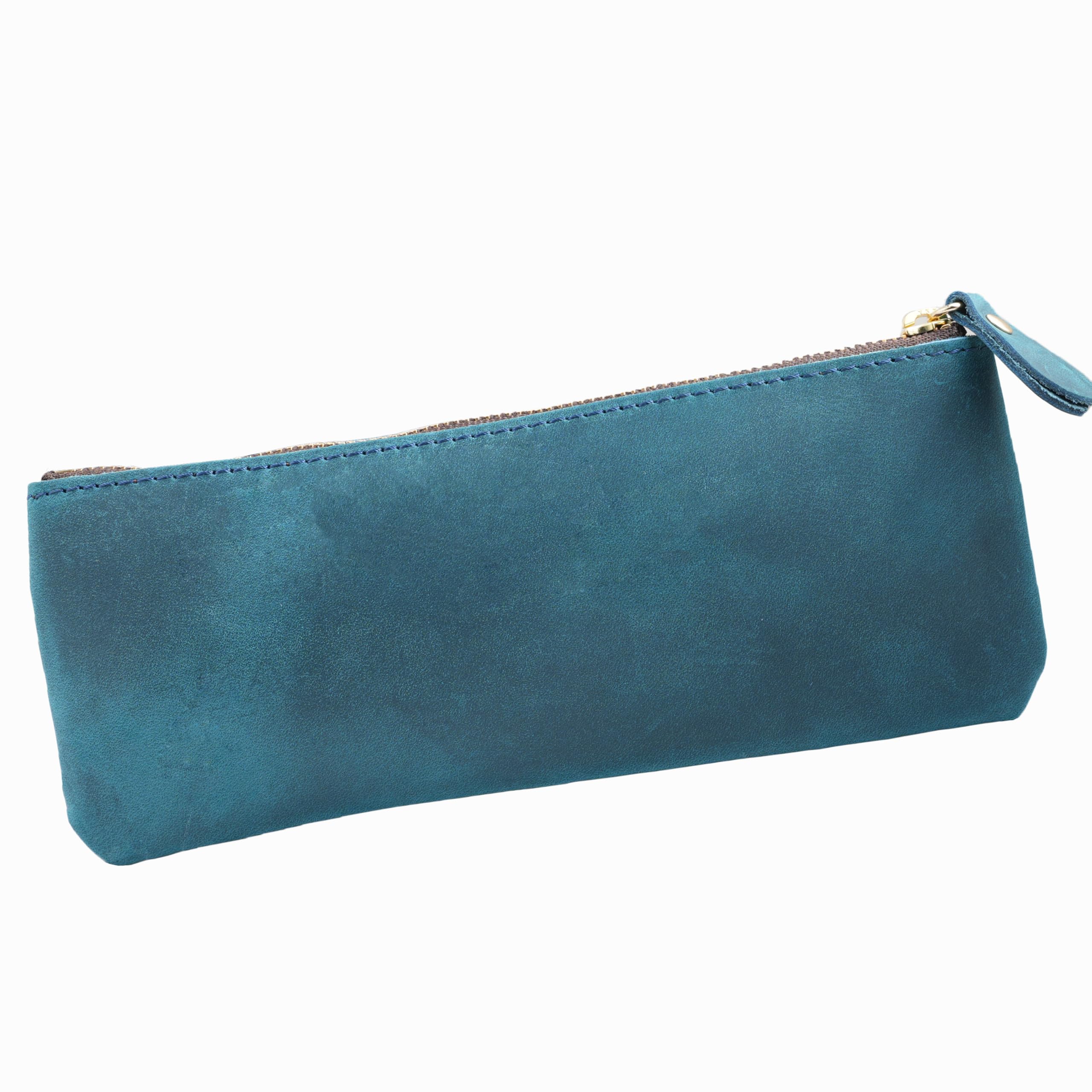 【努力特価】ぺンケース 本革 軽量 ビジネス 筆箱 スリム シンプル おしゃれ レザー (ブルー)