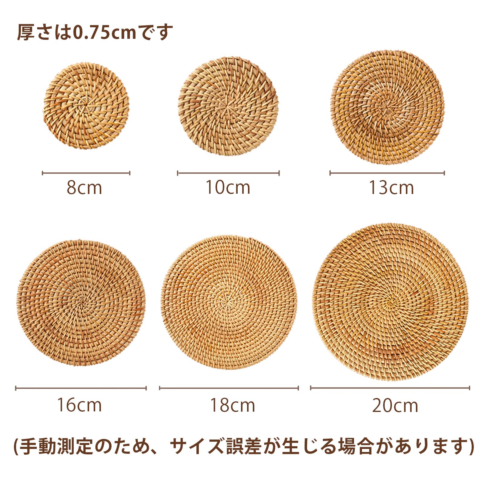 【在庫のみ】鍋敷き 籐編 耐熱鍋敷き 1枚セット 天然素材 籐マット 丸型 洗える断熱マット ナチュラル ラタン 厚手 断熱ホットパッド 手作り 鍋マット耐熱 籐製小物置き 敷き 手編み 断熱パッド お茶 お酒 コーヒー ハンドメイドナチュラルコースター (20cm-1枚セット)