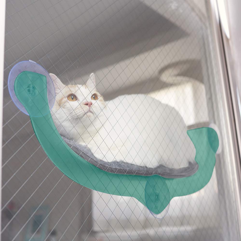・眺めを楽しむ、にゃんこの特等席。・バードウォッチングできちゃう、簡単取り付け。・猫のシルエットが見える。・好きな高さに取り付けられる。・「絶景リゾートテラス」と一緒に使える。