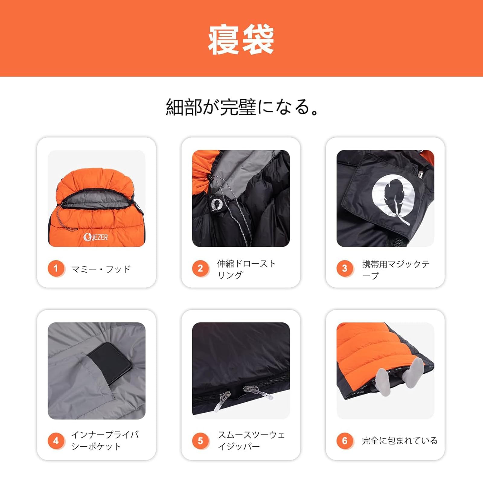 【数量限り】寝袋 冬用 ダウン 封筒型シュラフ 軽量高級ダウン シュラフ 500g〜1200g充填 400T撥水加工 羽毛寝袋 コンパクト 足が出せる 全開可能 キャンプ 登山 車中泊 防災用