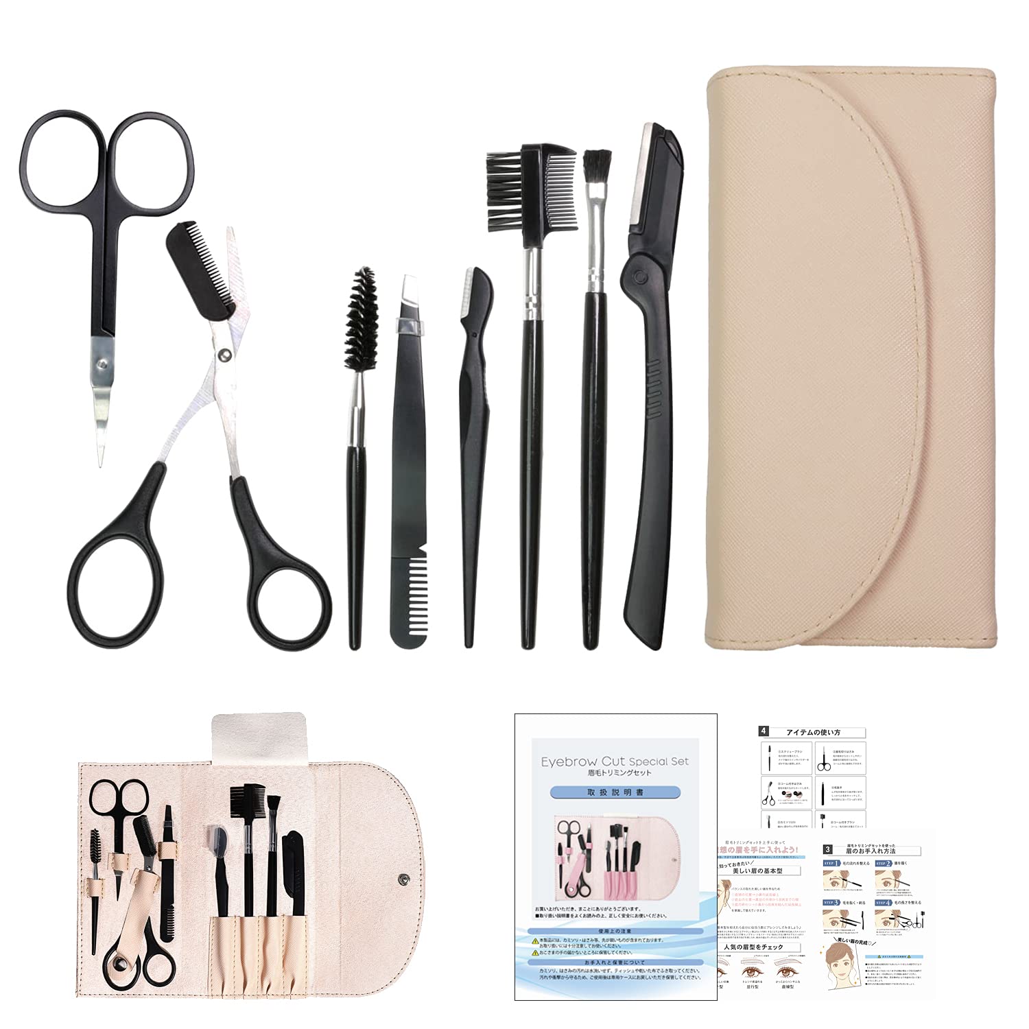【在庫のみ】【美容のプロが共同開発】眉毛セット 眉毛 ハサミ 眉 カット 毛抜き セット レディース メンズ 男女兼用 (ベージュ)