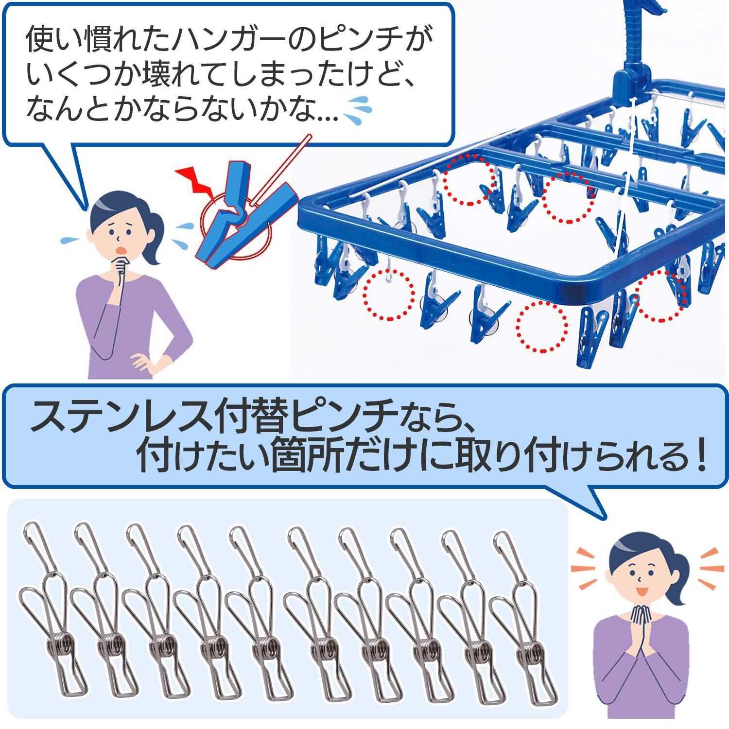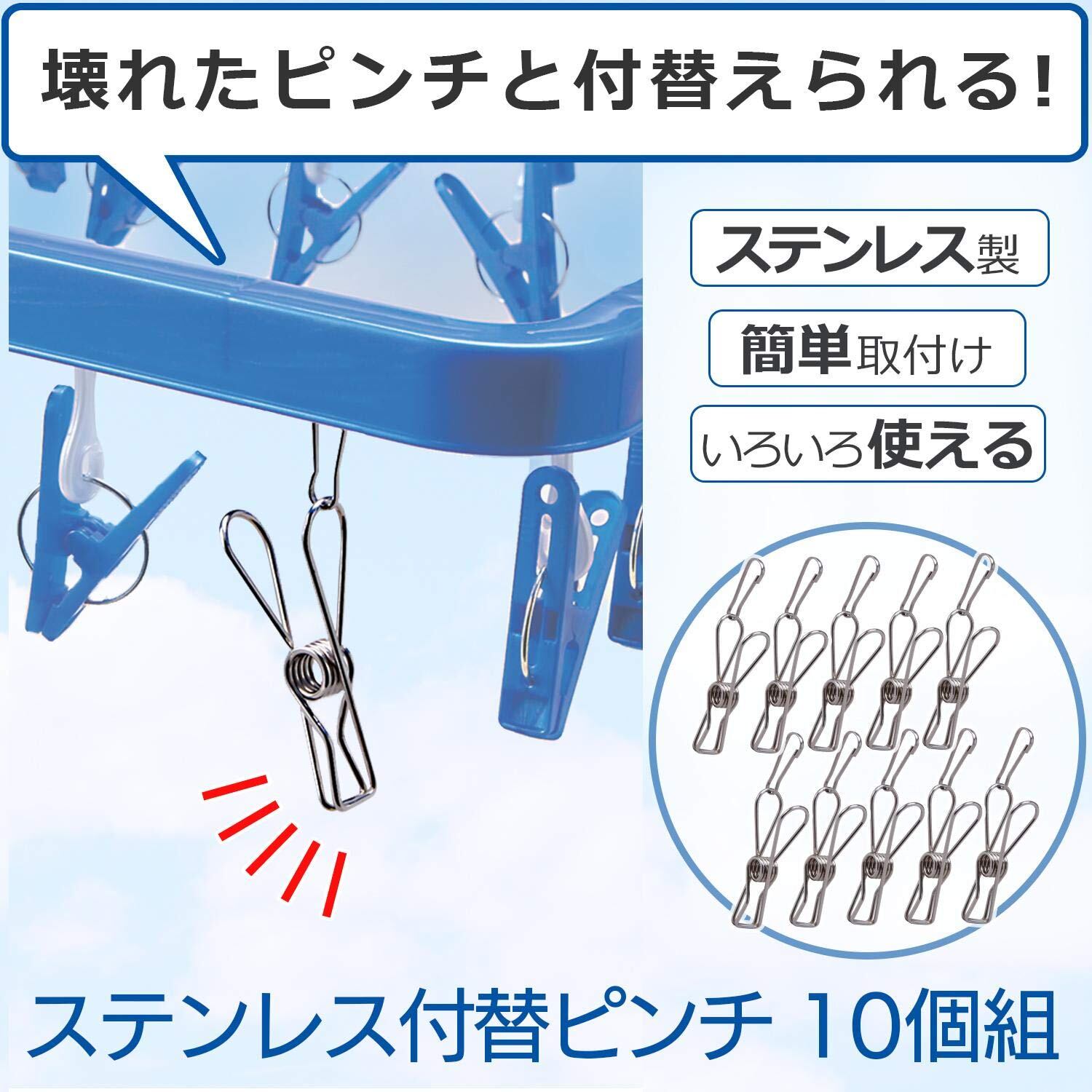 【特価処分】コモライフ ステンレス付替ピンチ 10個組 ピンチハンガー 洗濯ばさみ 錆びにくい 長持ち スペア 袋止め クリップ シルバー 小
