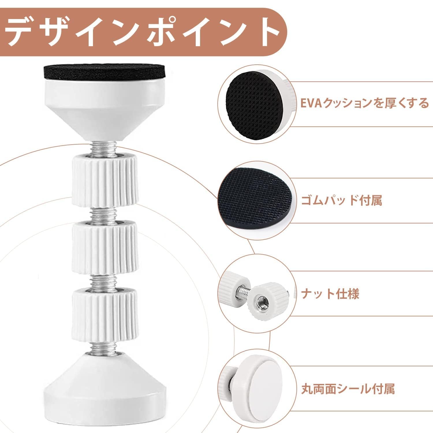 「様々な隙間に活用」ナット付き仕様で最大約10.5cmまでの長さを調節できます。隙間の幅に応じてナット数を変えてもしくはナットを回って設置することができます。タンスやベッド、テーブルなど様々な場所に活用できます。
