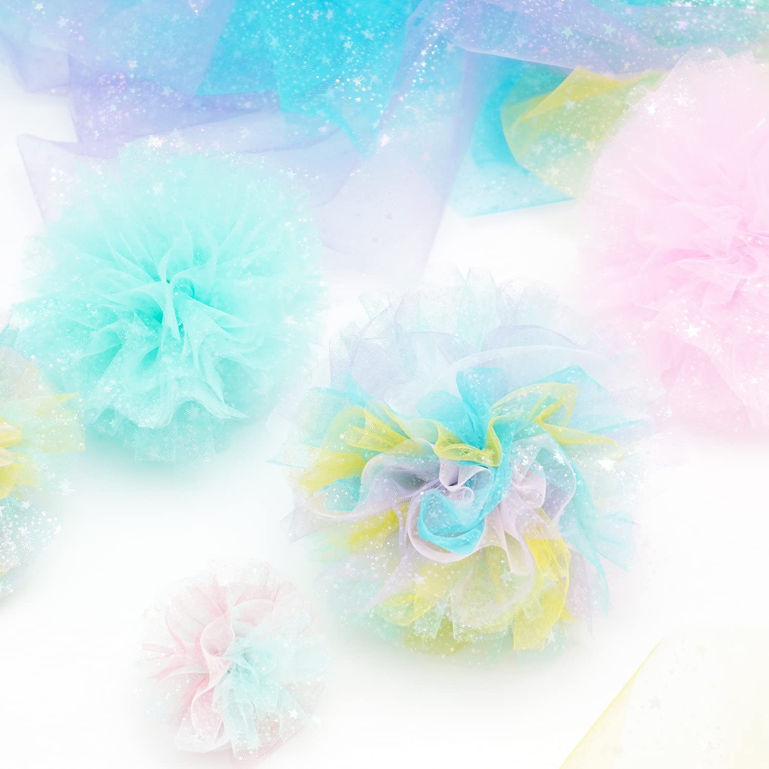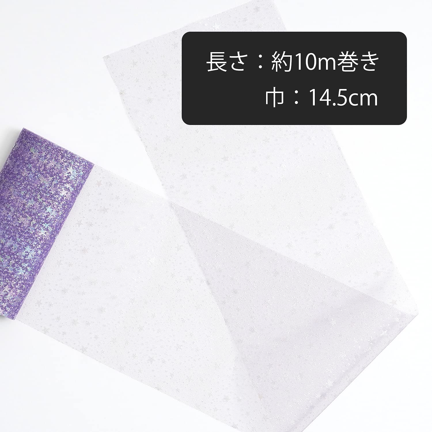 【新着特価】原ウール ラメ入り チュールリボン スター ロール 10m 幅約14.5cm 生地 星 グリーン