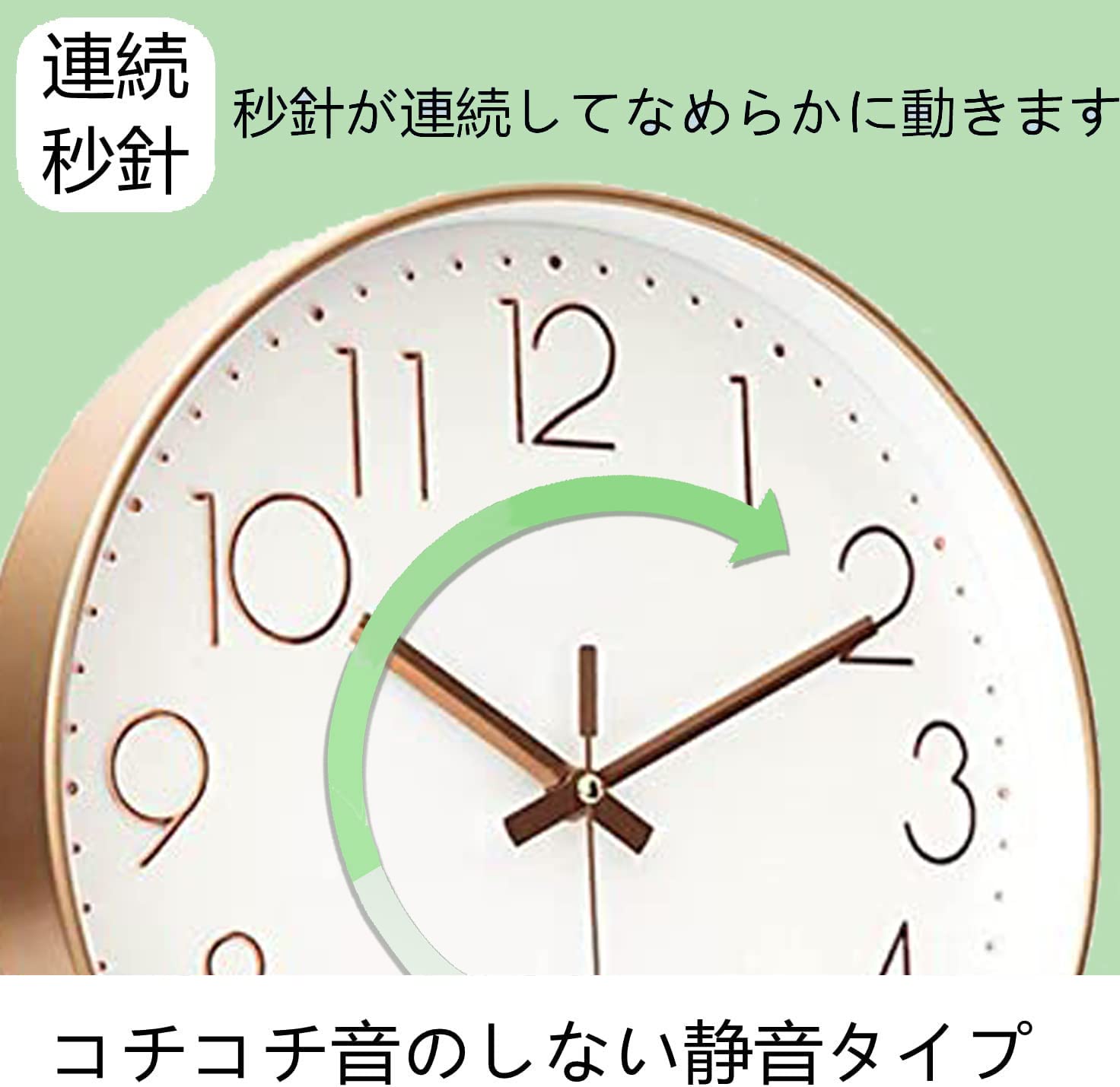 掛け時計 電波時計 静音 連続秒針 おしゃれ 壁掛け 時計 立体文字 北欧 直径30cm 自動受信 静か(ピンクゴールド)