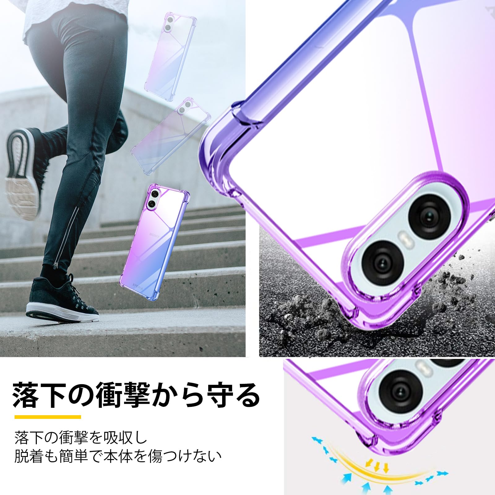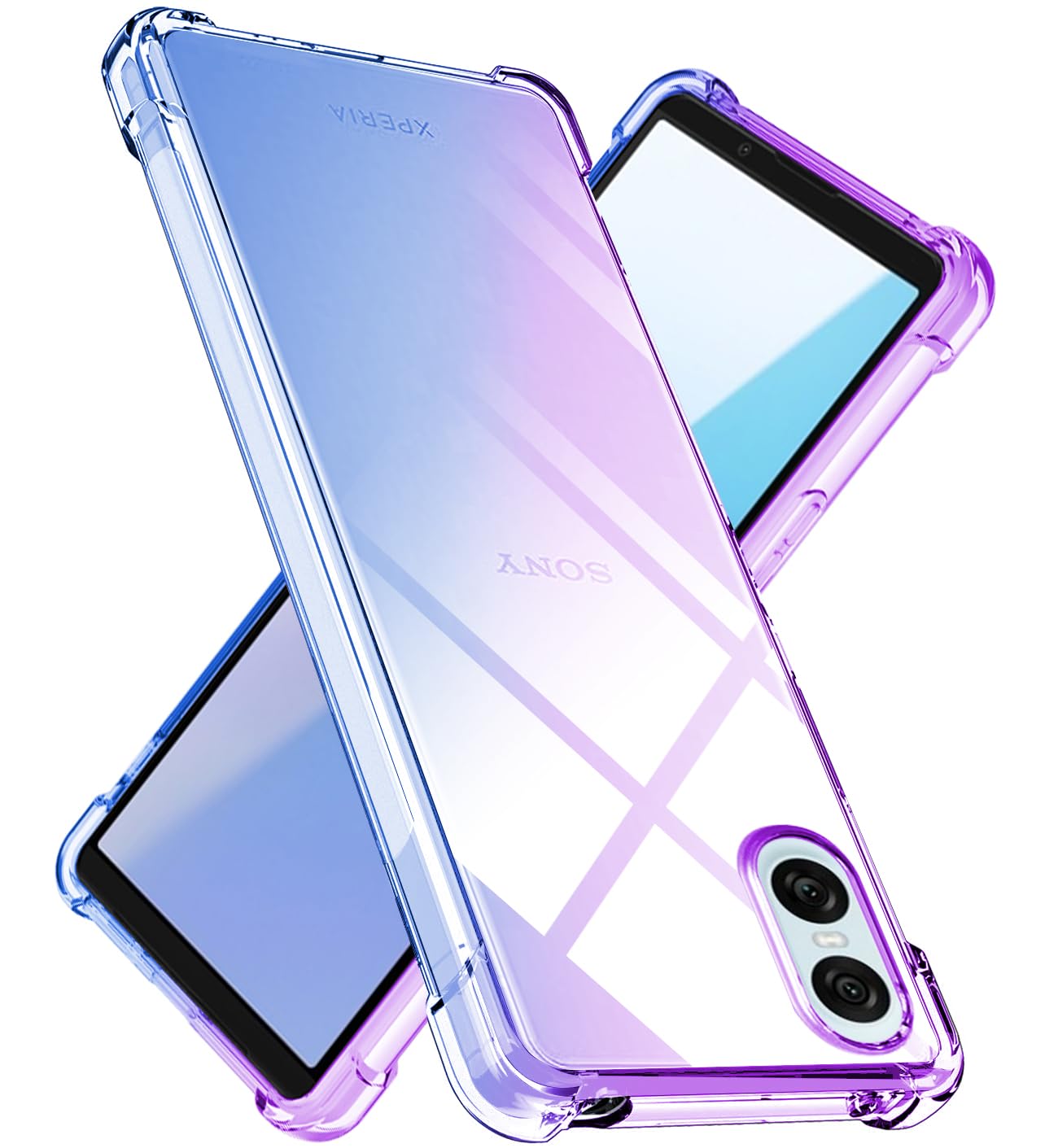 Xperia 10 VI ケース クリア TPU 薄型 軽量 グラデーション色 ケース 耐衝撃 衝撃吸収 カメラ保護 米軍MIL規格取得 滑り止め 黄変防止 Xperia 10 VI カバー 防塵 一体型 人気 携帯カバー(パープルブルー)