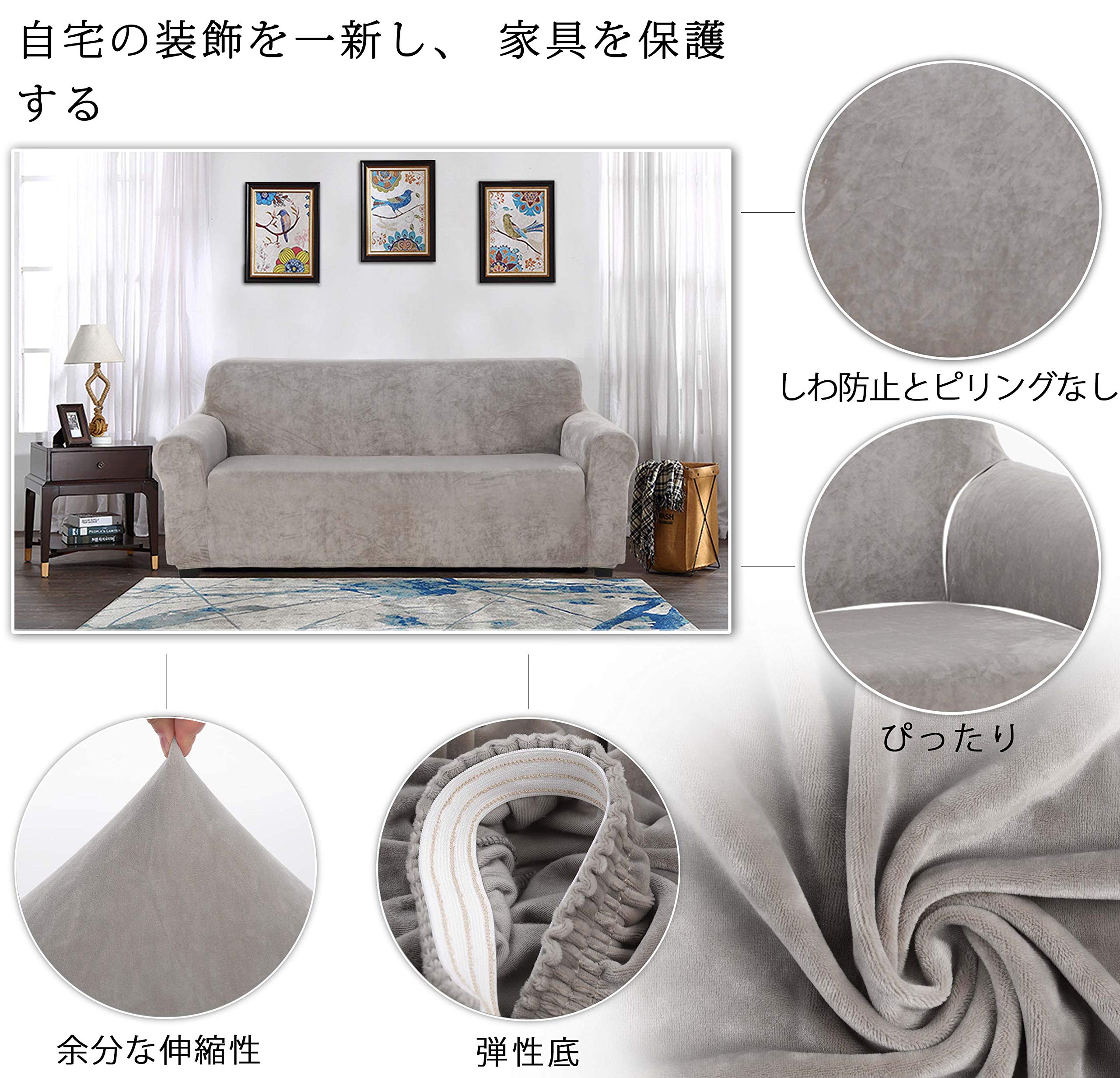 【人気】TIANSHU フランネル ソファーカバー 3人掛け 肘付き 無地 縦横弾力 ストレッチ フィットタイプ 肘付き 滑り止め 柔らかい 伸縮素材伸び良く 四季適用 超便利(3人掛けライトグレー)