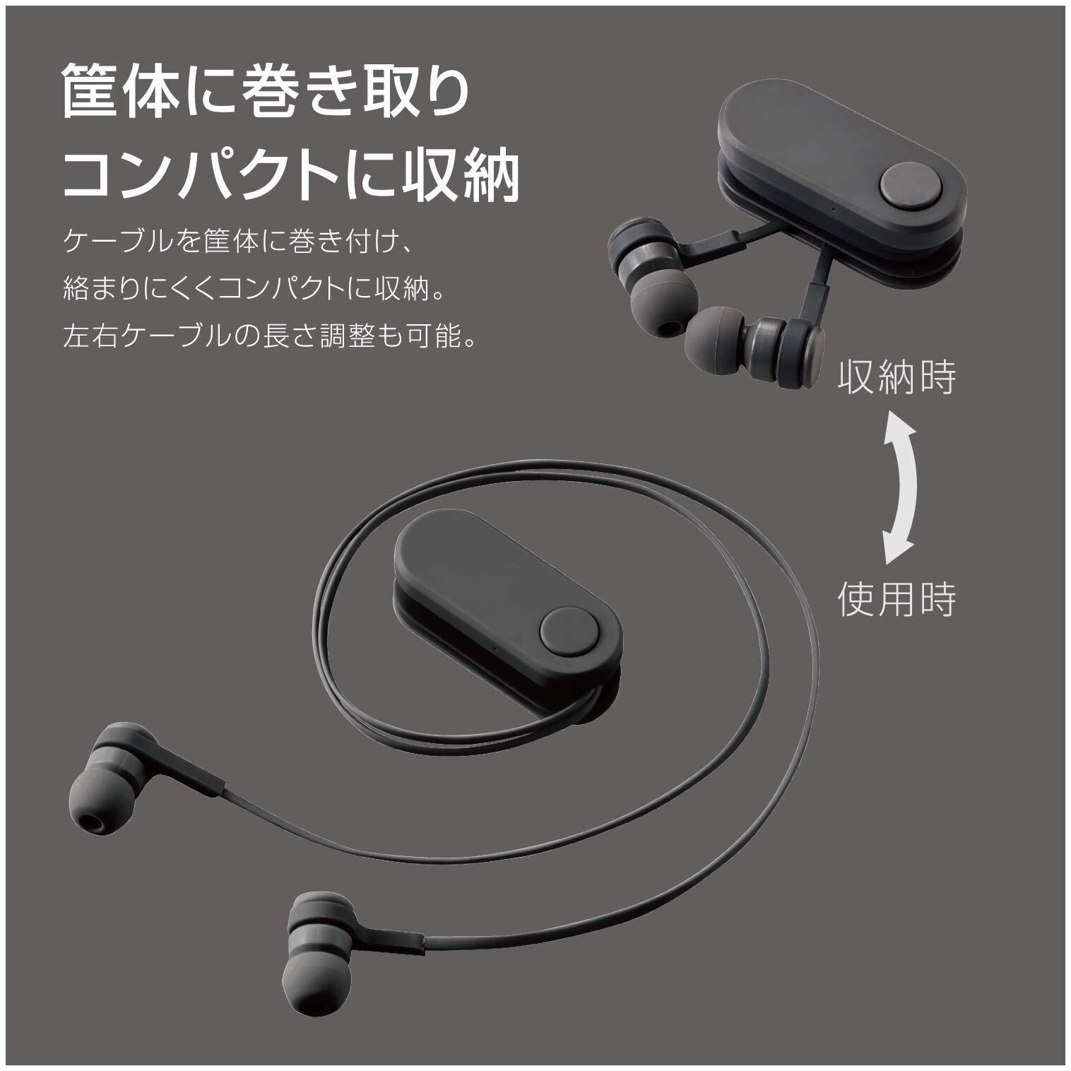 ■筐体にコードを巻き付けることで左右のコード長さを調節して使用することができます。