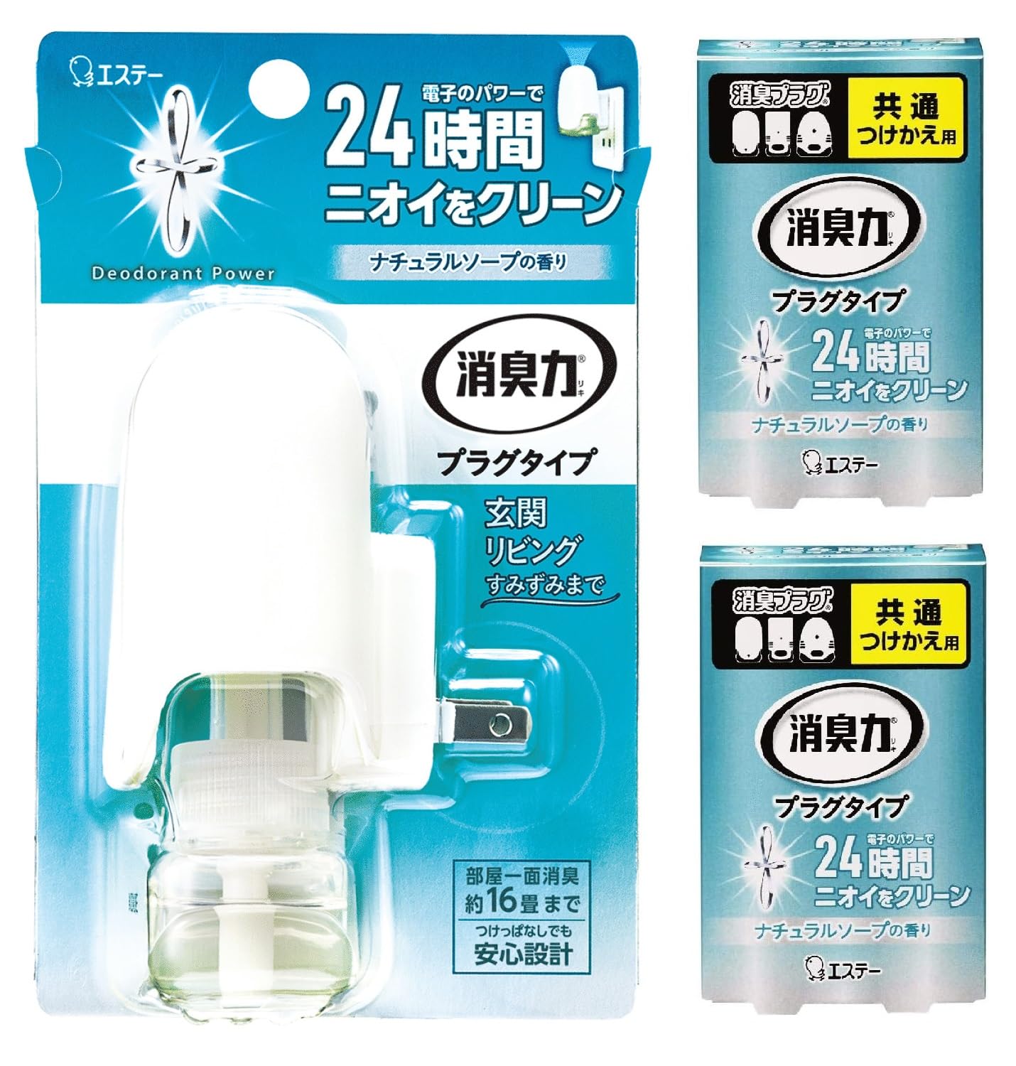 消臭力 [まとめ買い] プラグタイプ 部屋用 トイレ用 ナチュラルソープ 本体+つけかえ2個 60mL 部屋 玄関 リビング トイレ 消臭剤 消臭 芳香剤