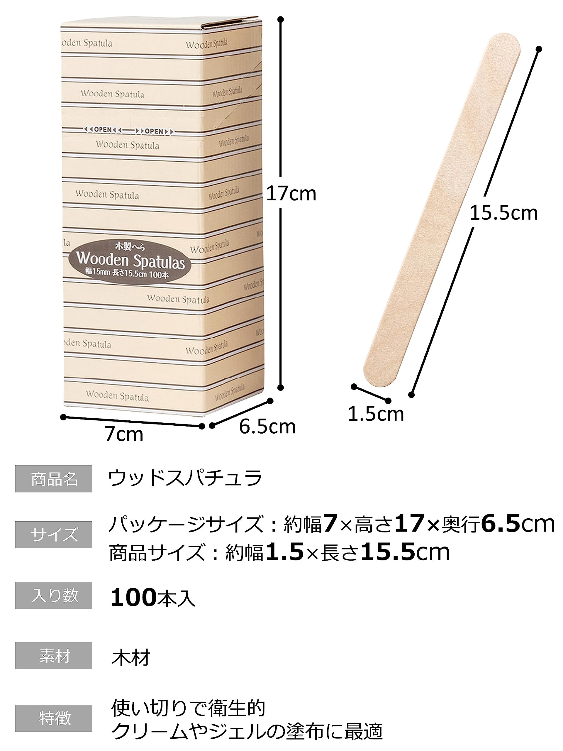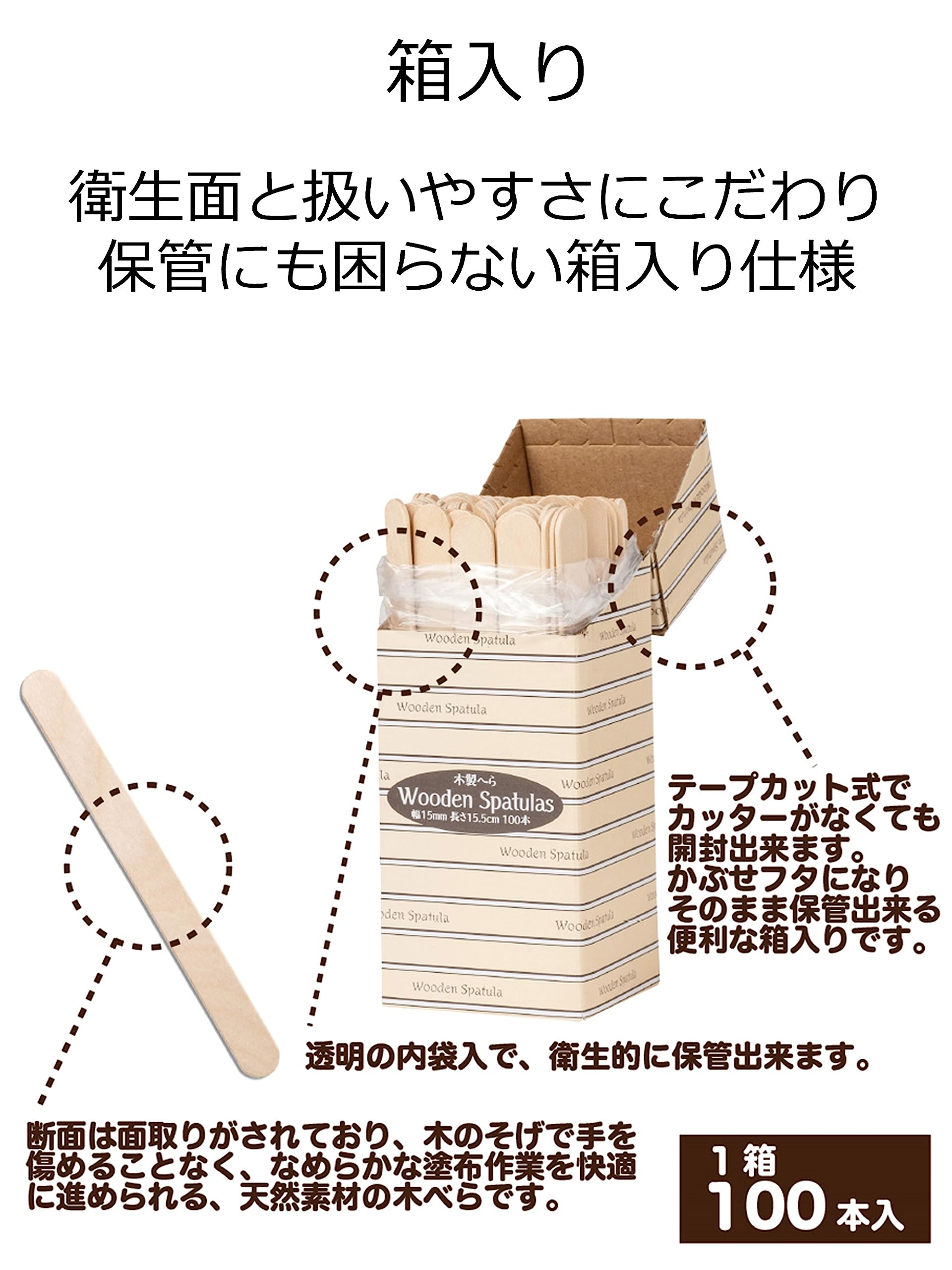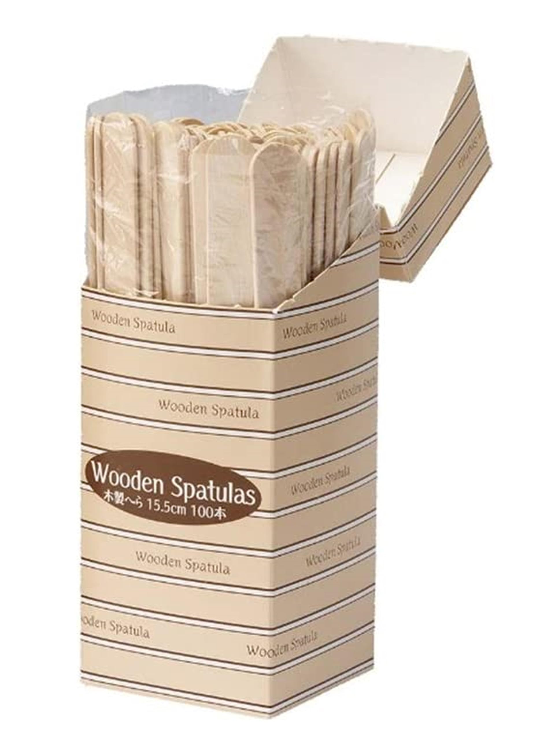 サンナップ 使い捨て スパチュラ ブラウン Lサイズ 横1.5cm×縦15cm×厚み0.15cm 木製 ヘラ BOXタイプ 100本入