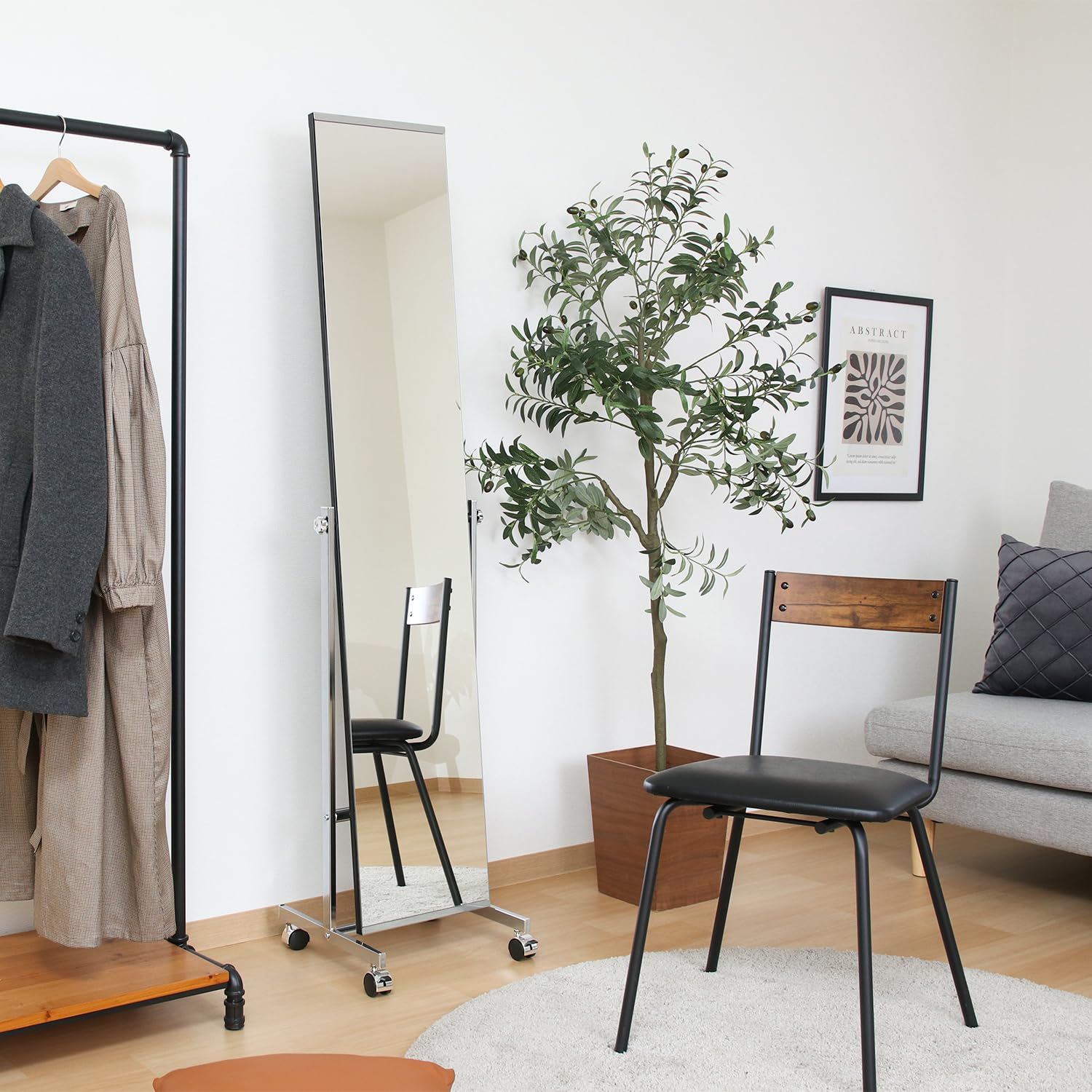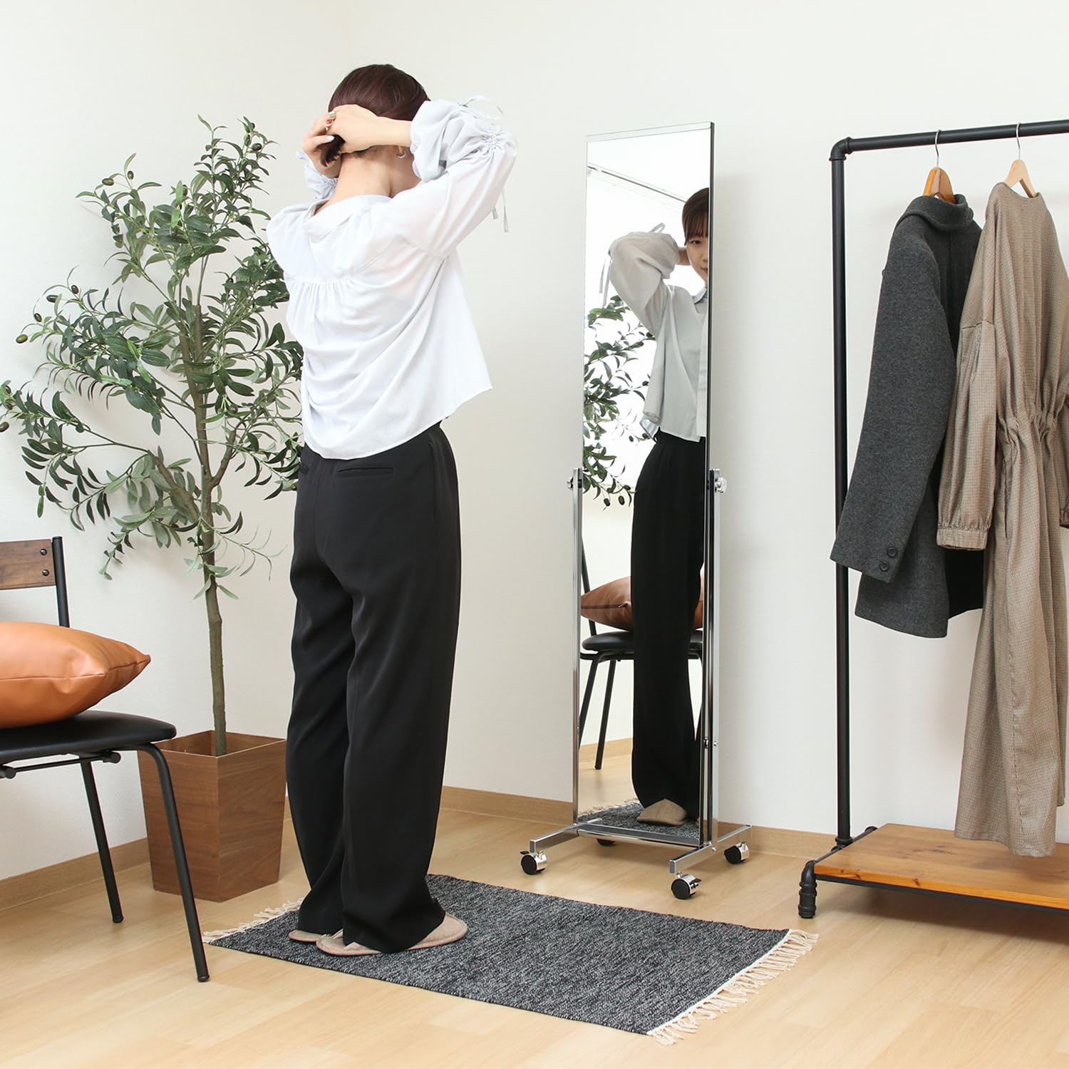 不二貿易 スタンドミラー キャスター付き 全身 姿見 鏡 幅37×奥行36×高さ159cm シルバー 角度調整 飛散防止 15547