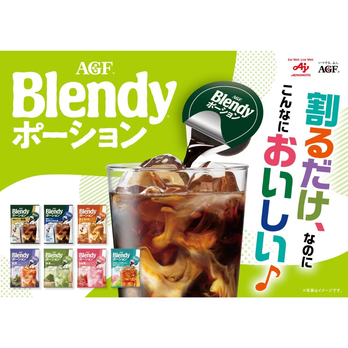 「Blendy(ブレンディ)」 ポーションは、冷たい牛乳(ミルク)や水に溶かすだけで簡単に、コクのあるアイスコーヒーやアイスカフェオレ、ミルクティ、ミルクココアなどが楽しめる濃縮タイプの希釈用ドリンク ポーションシリーズです。
