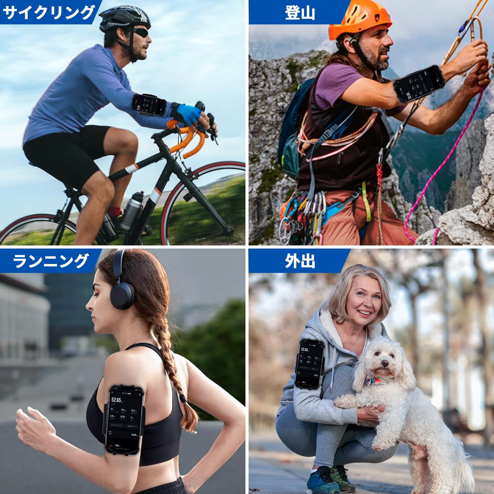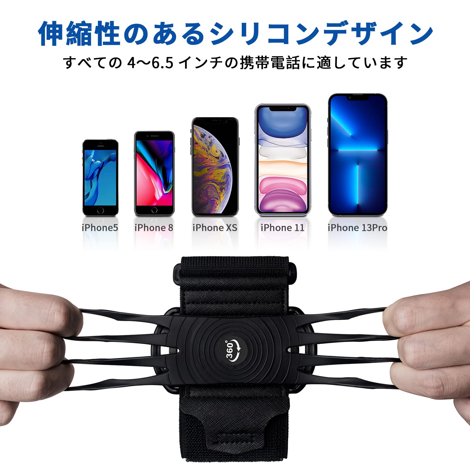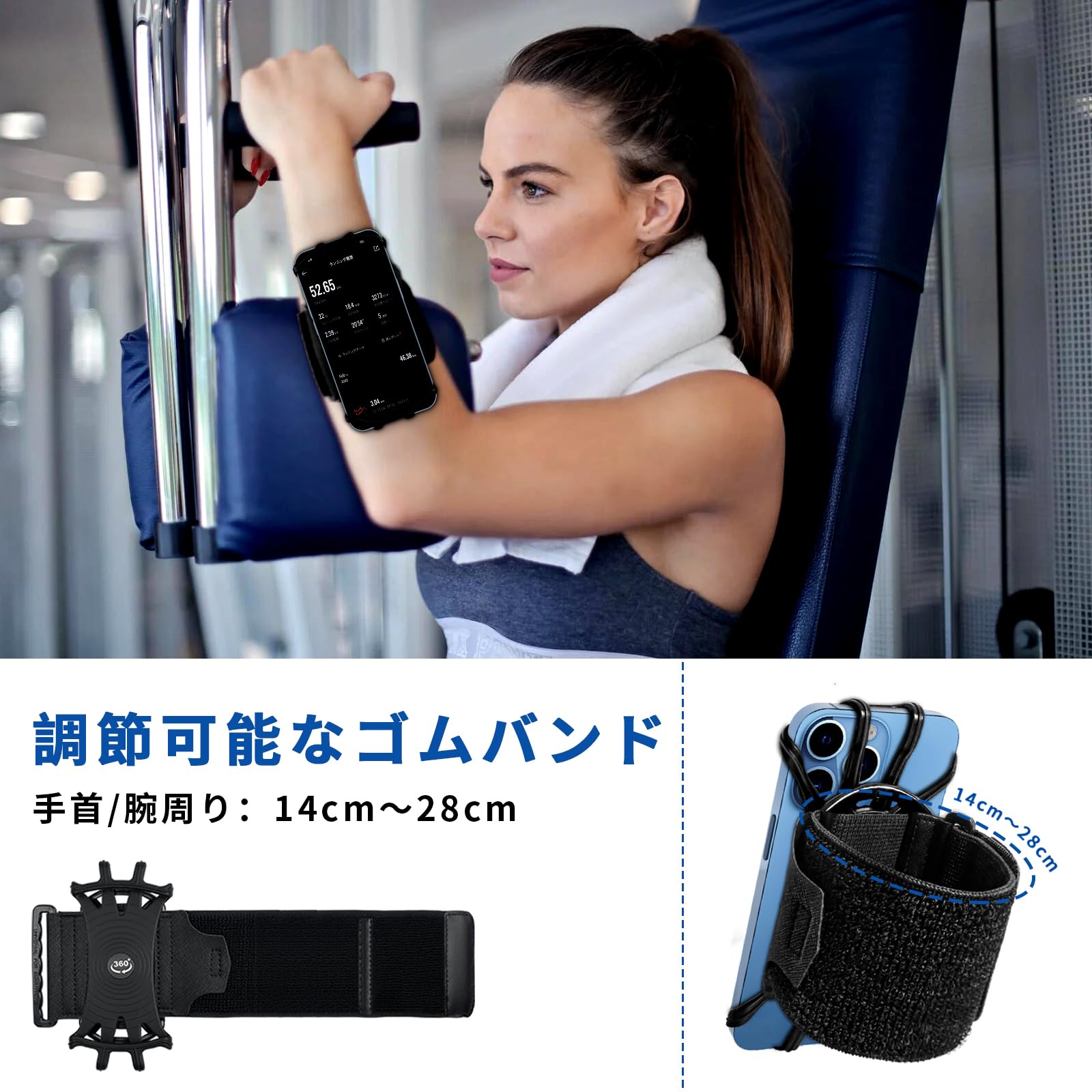 【360度回転式】360°回転できるデザインで自由に角度を調節して、楽々に写真、撮影、チャット等を操作できます。ランニング/登山/ジョギング/ウォーキング/サイクリング/ヨガ/ジムなどに適用しています。