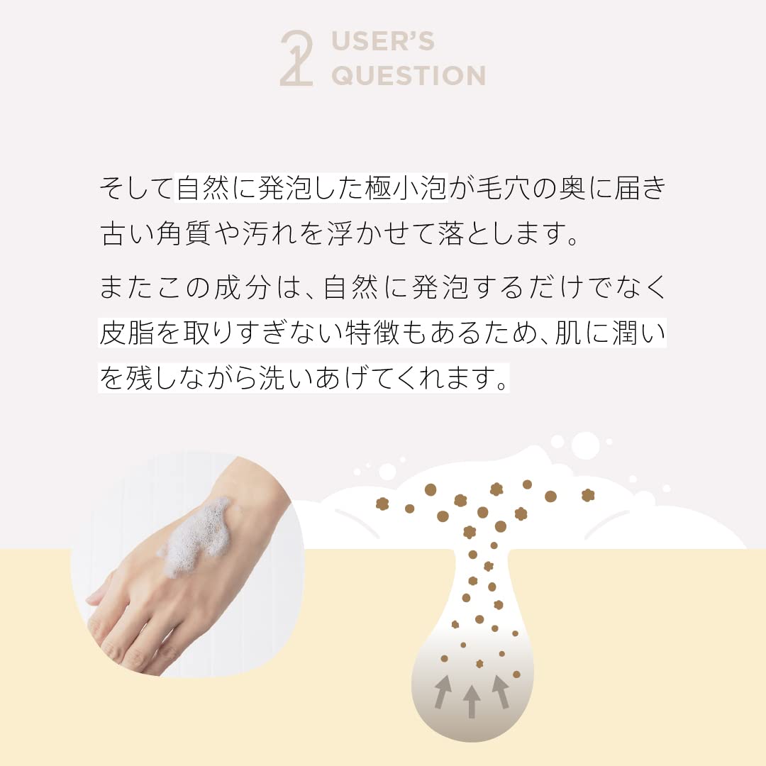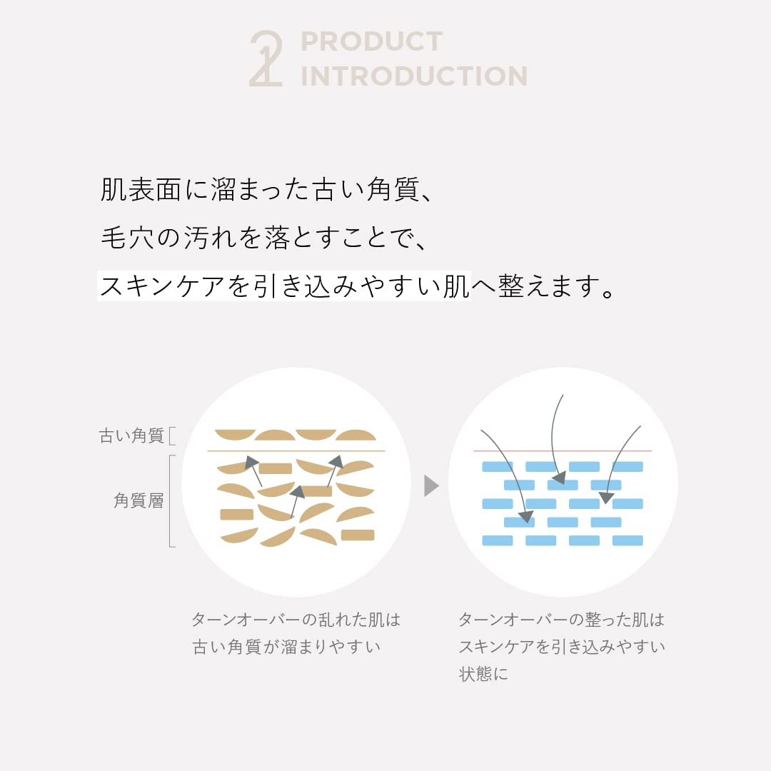 1.毛穴の奥まで極小泡が届き、汚れを浮かせる 極小泡が、肌に蓄積した余分な角質や毛穴の汚れを浮かせて落とします。
