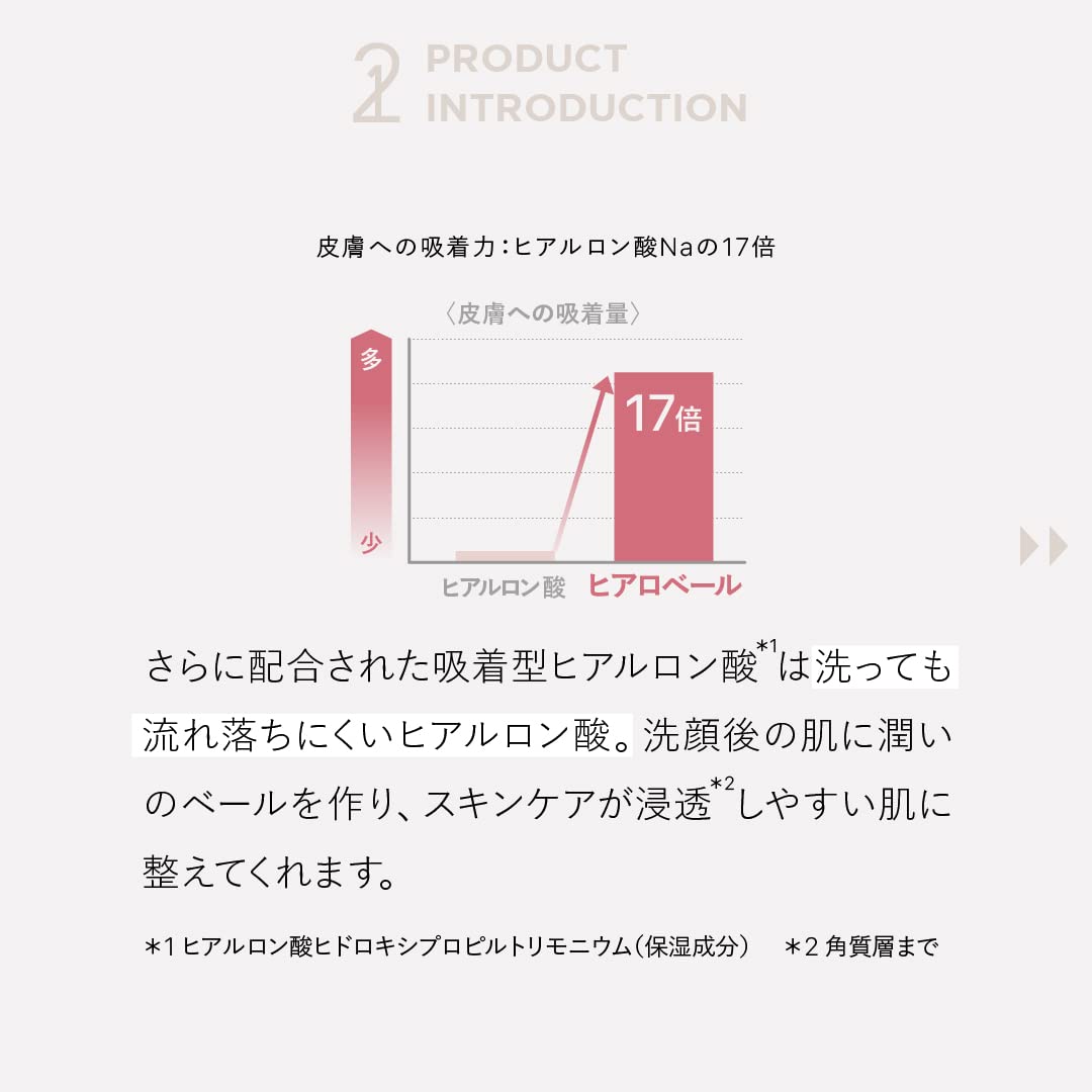 3.スキンケアが浸透*2しやすい肌へ 吸着型ヒアルロン酸*3が肌に潤いベールを作り、水分を引き込みやすくする。