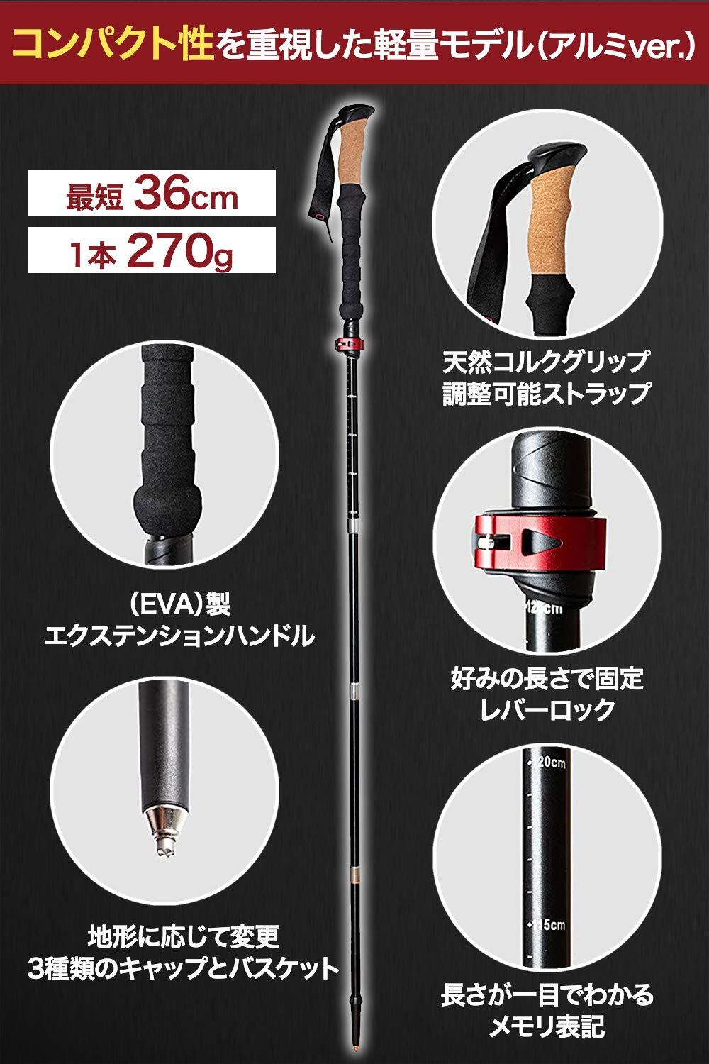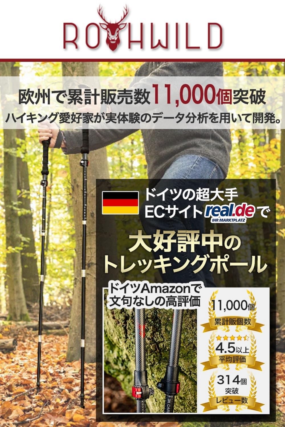 【在庫のみ】Rothwild ドイツ産 トレッキングポール 2本セット 超軽量 高強度 登山 収納バッグ付 ストック ステッキ ウォーキング 登山杖 ポール