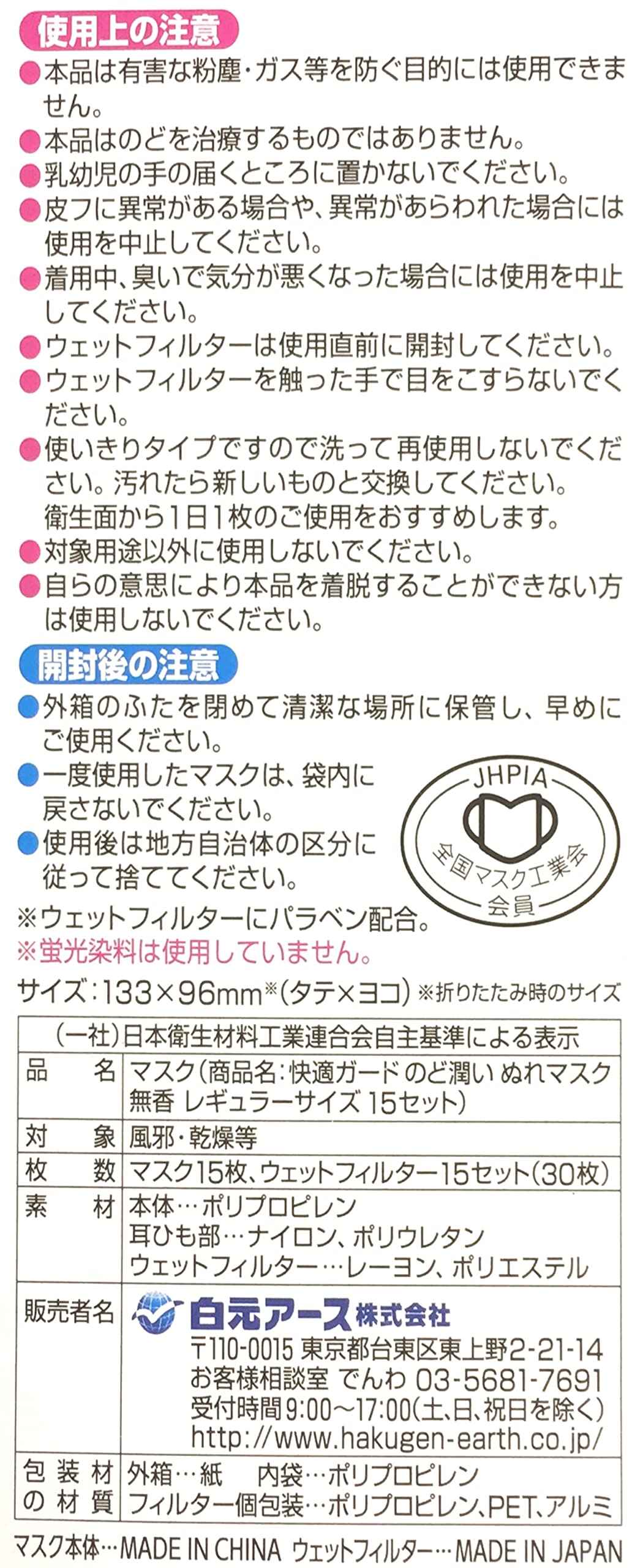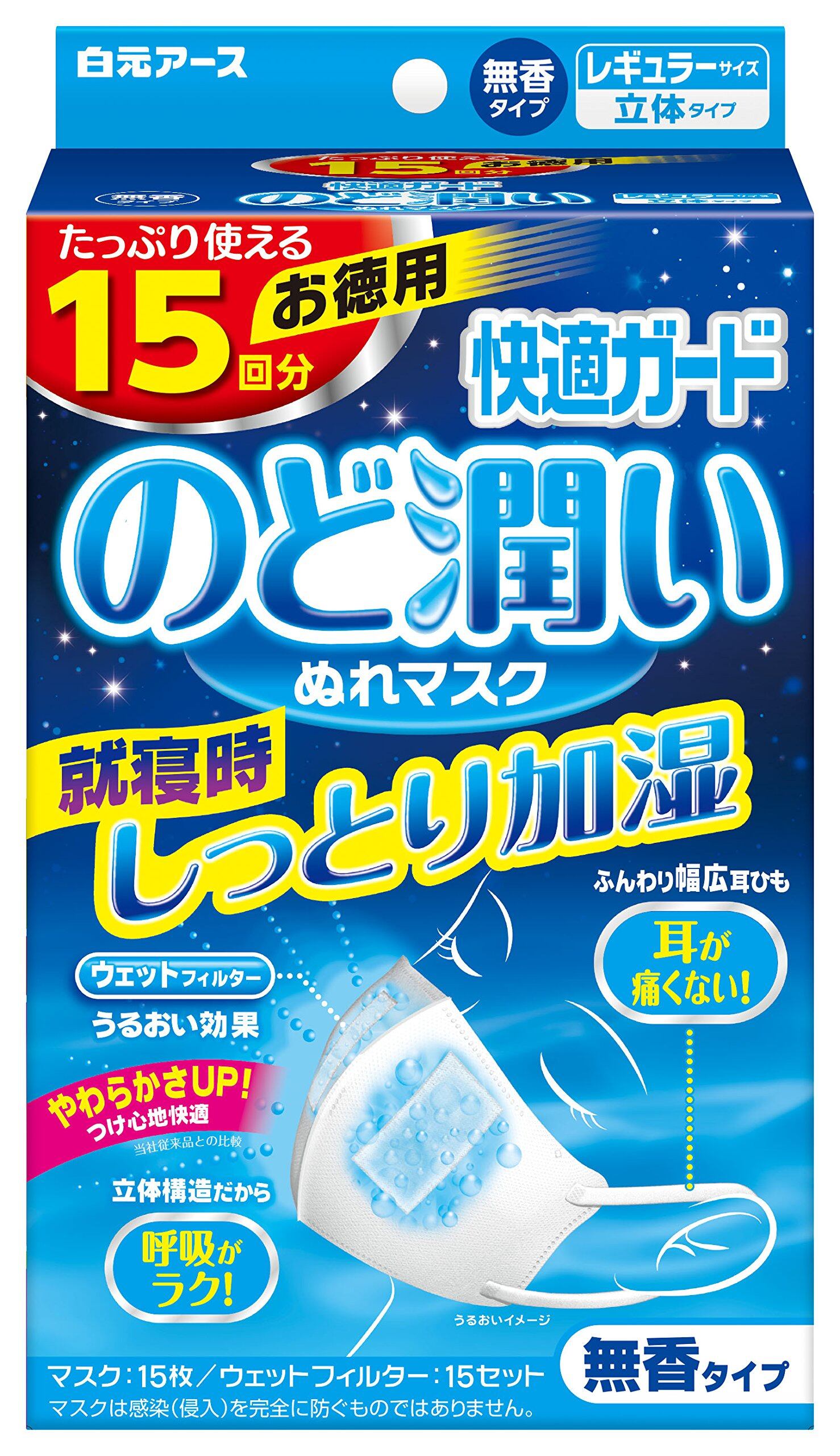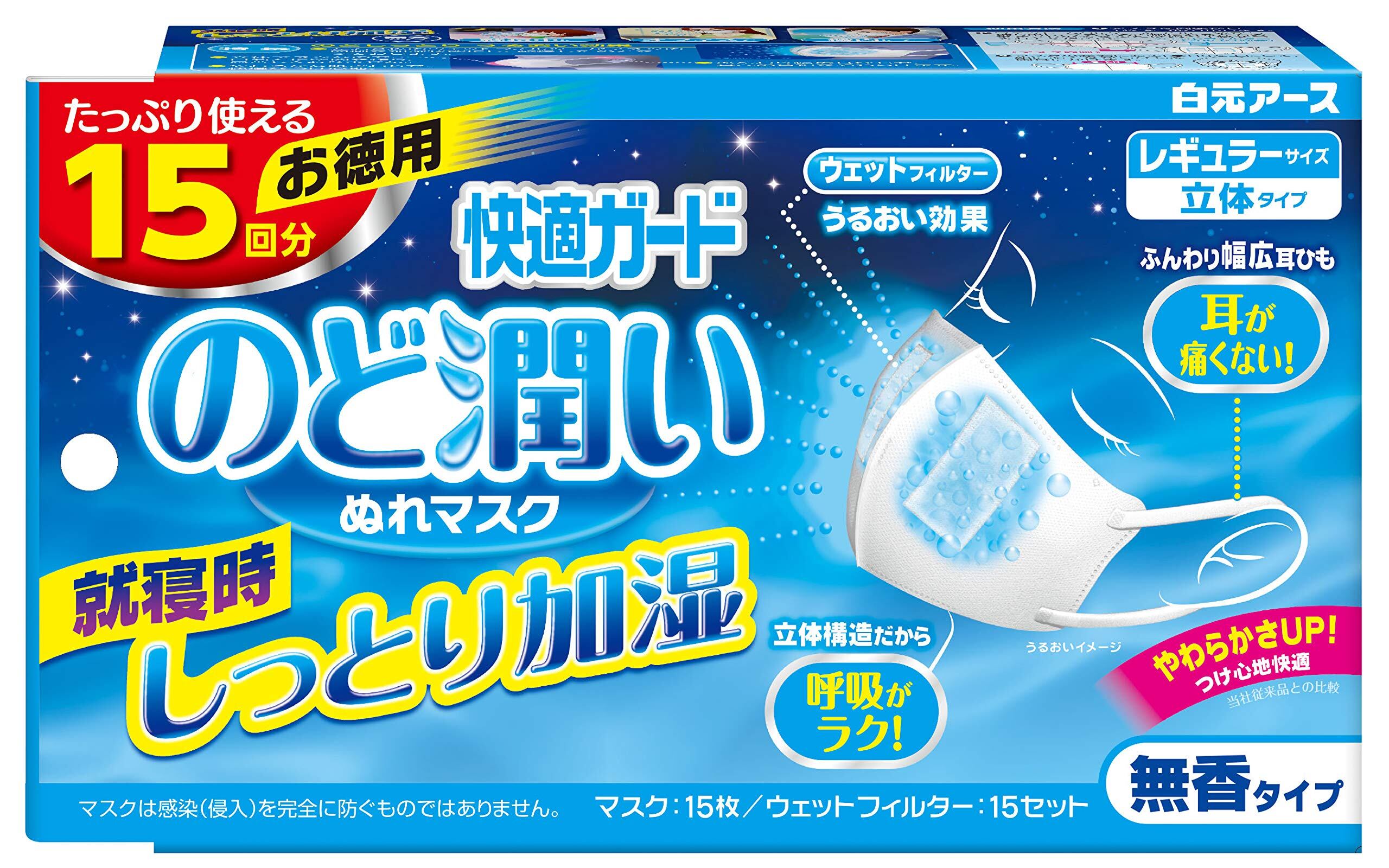 【数量限り】快適ガード のど潤い ぬれマスク 無香タイプ レギュラーサイズ 15セット入