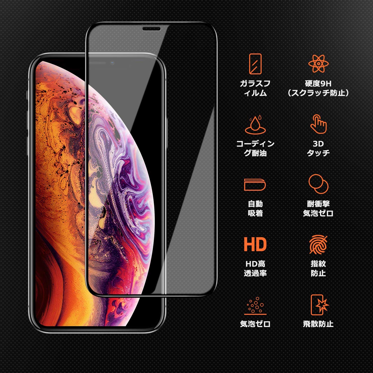 【高透過率】 99.9%の超高透過率は、iPhone Xの真の画面感を維持し、あらゆる操作を妨げず、3D顔認識、3Dタッチに対応し、高品質の画像を鮮やかに反映します。