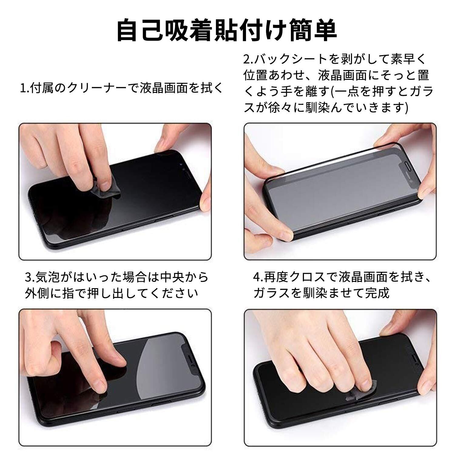 【強力吸着】静電吸着設計、自動吸着、気泡入りにくい、操作が簡単です。