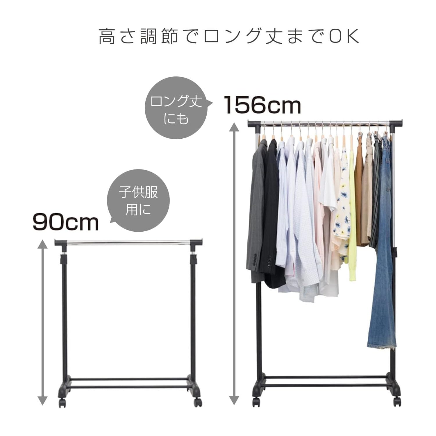 ロングコートやワンピースなどの丈の長い衣類もたっぷり収納
