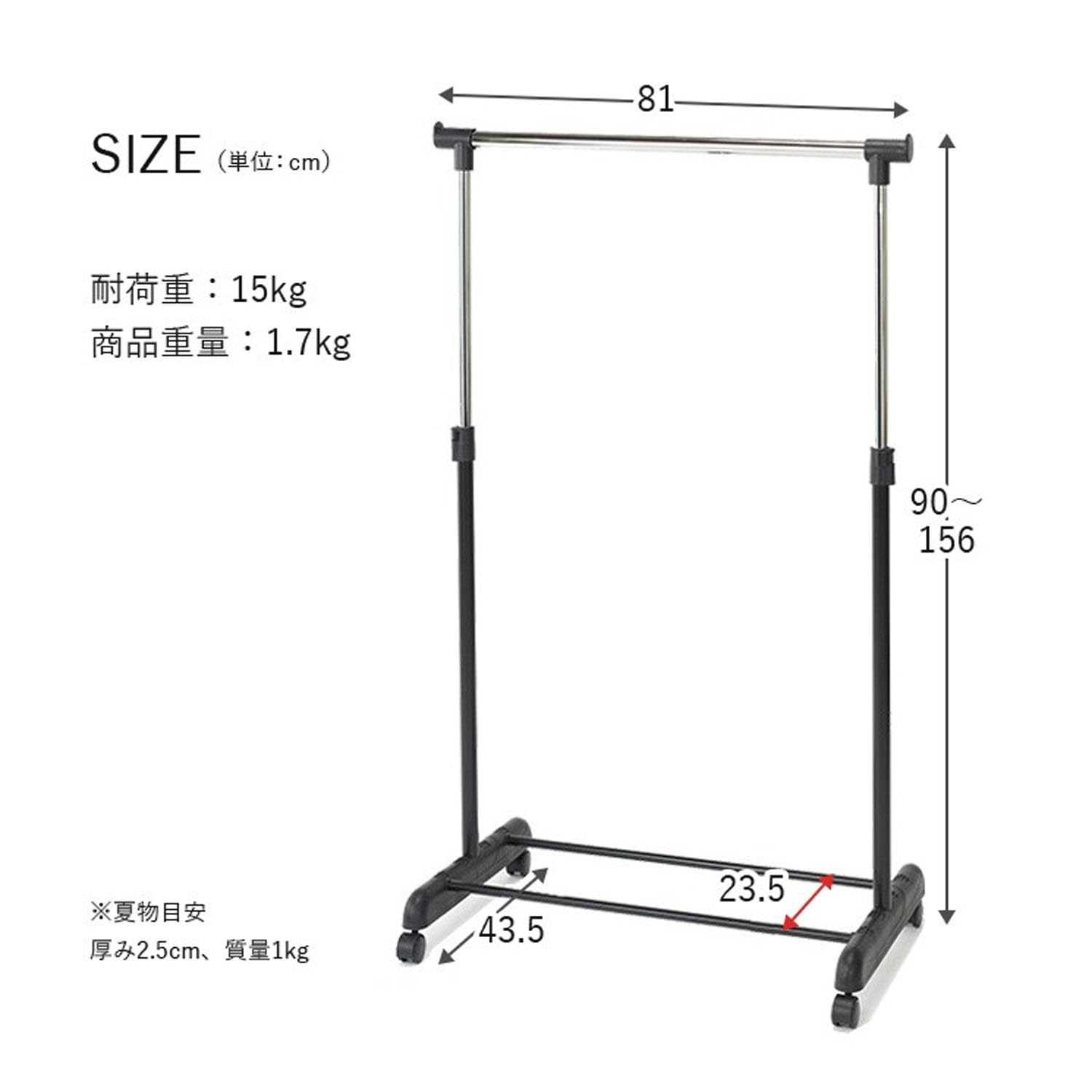 [ドウシシャ] ハンガーラック シングル 衣類収納 上下伸縮 ブラック 幅80cm 耐荷重15kg NGHS-81BK