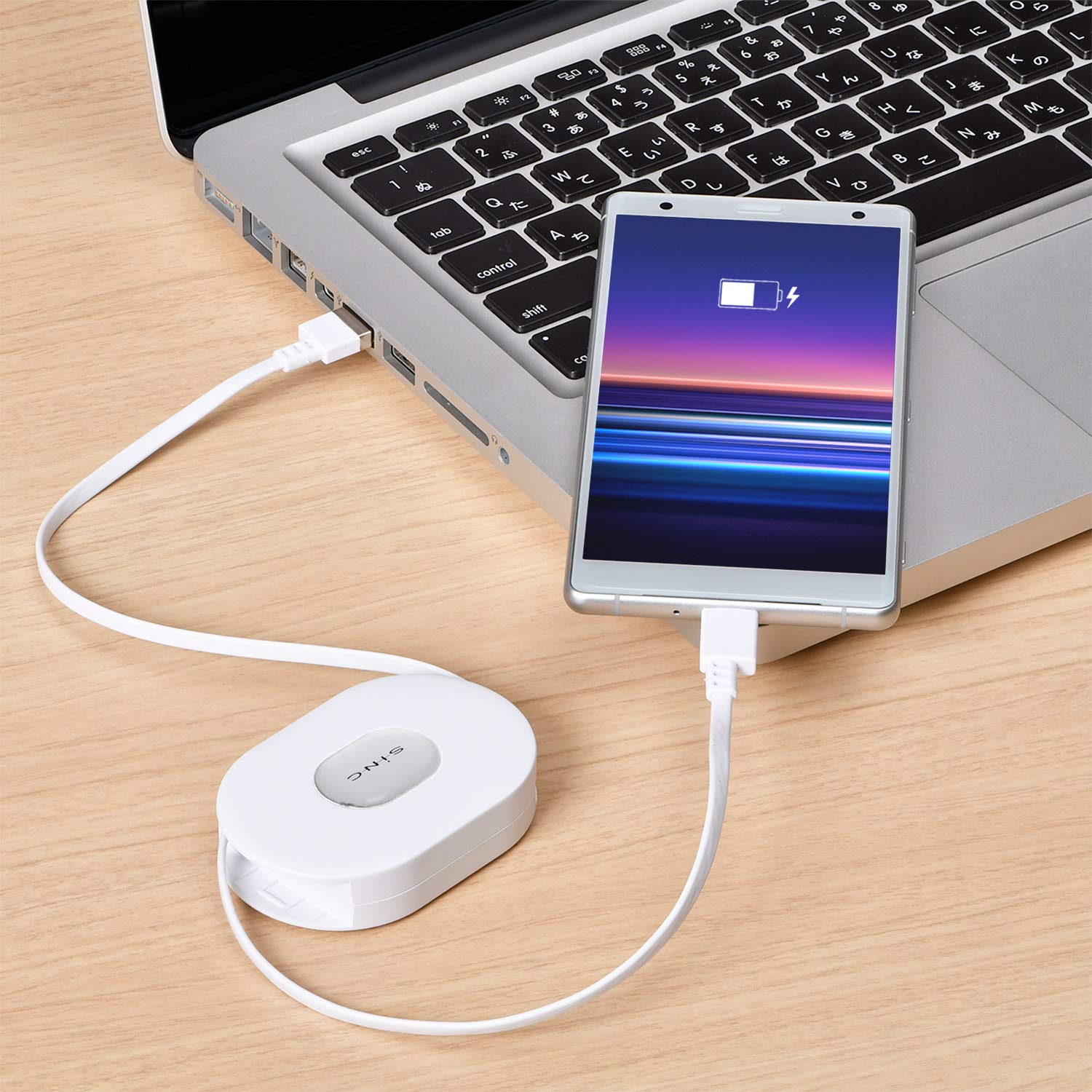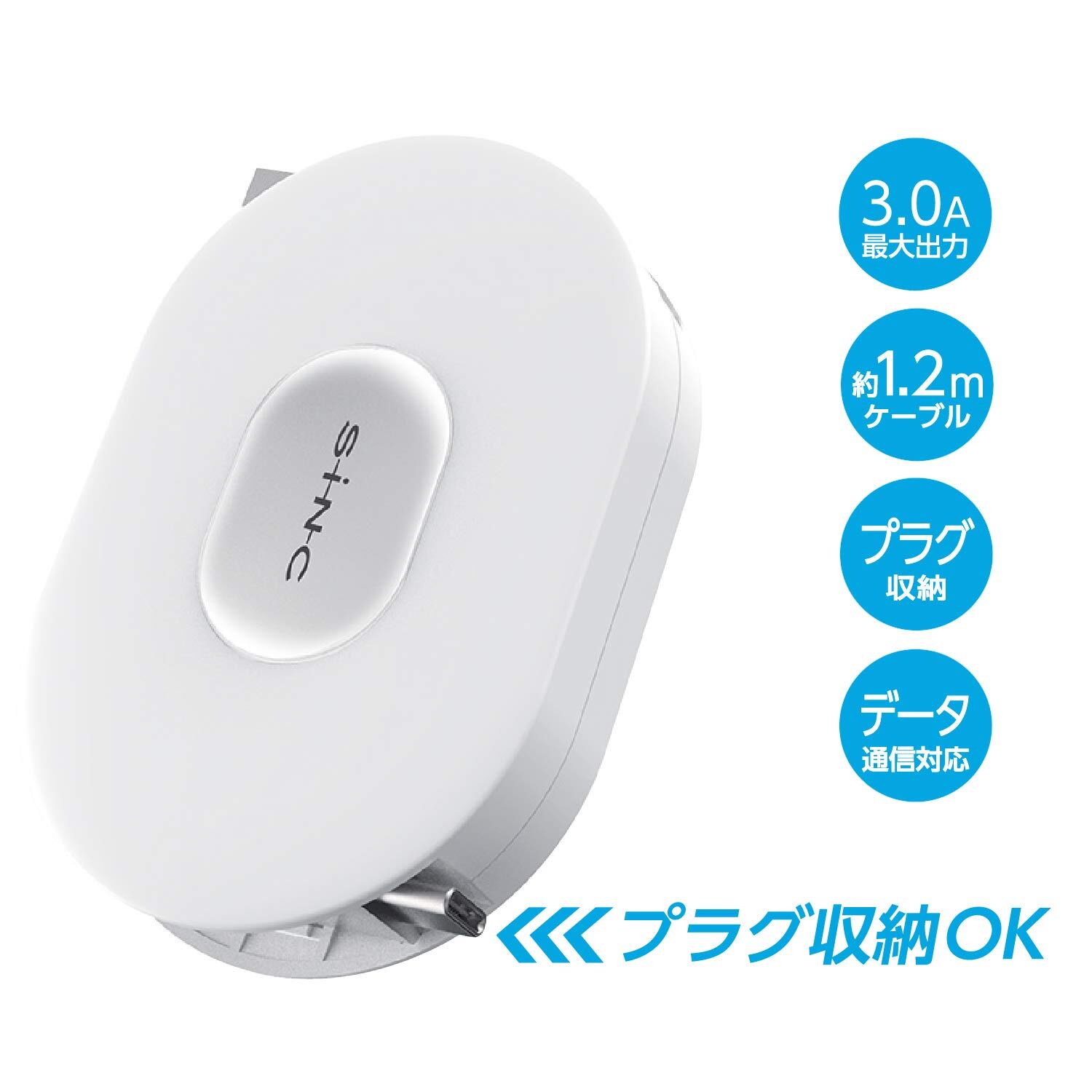 【巻き取り式ケーブルでコンパクトに収納】約1.2mの長さのケーブルを収納が可能。コネクタが本体に収まりスマートに持ち運べます。