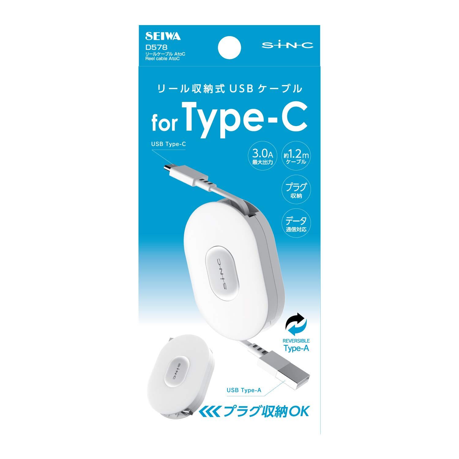 【人気】セイワ(SEIWA) 車内用品 スマホ充電ケーブル TYPE-C リールケーブル D578 巻き取り式 充電 タイプC 約1.2m ホワイト Android IQOS3 データ通信 同期 2.4A