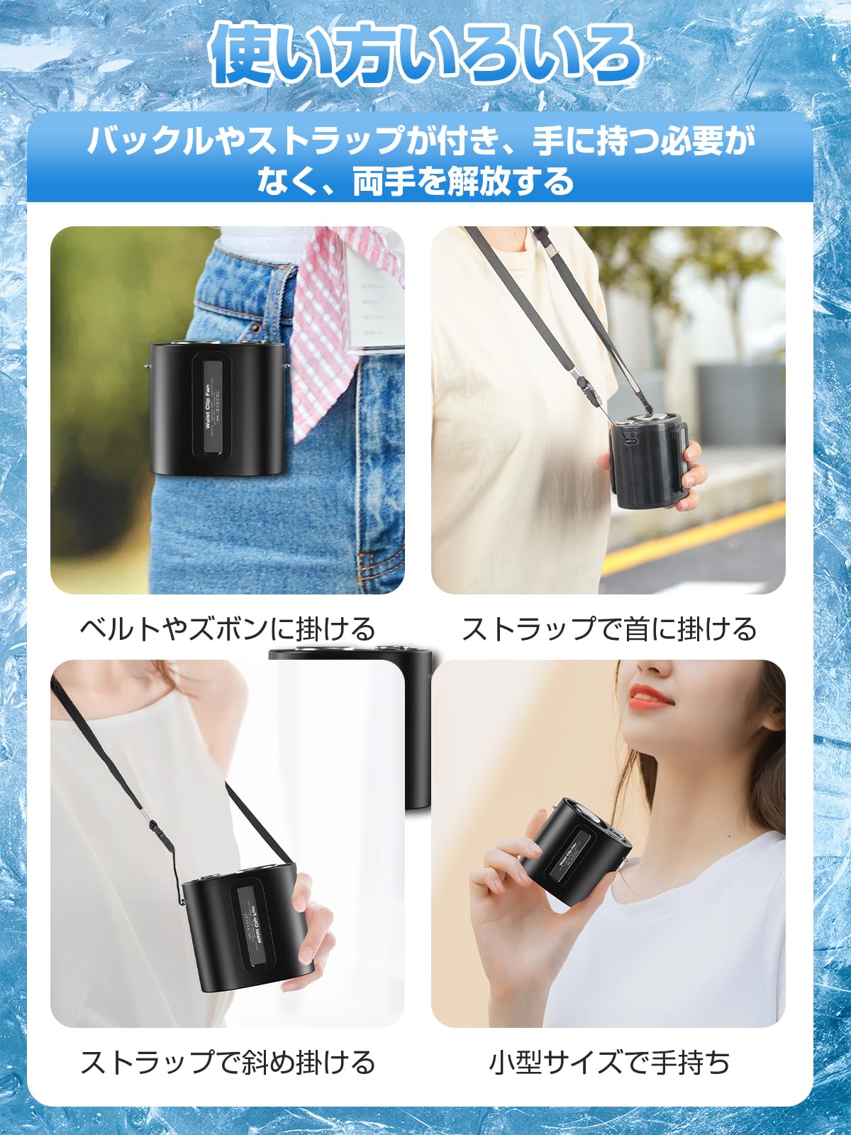 【ハンズフリーで自由自在】:手に持つだけでなく、ベルトに挟んだり、付属のストラップで首に掛けることもできます。両手が自由になるため、屋外での作業やキャンプなど、さまざまなシーンで快適に使用できます。