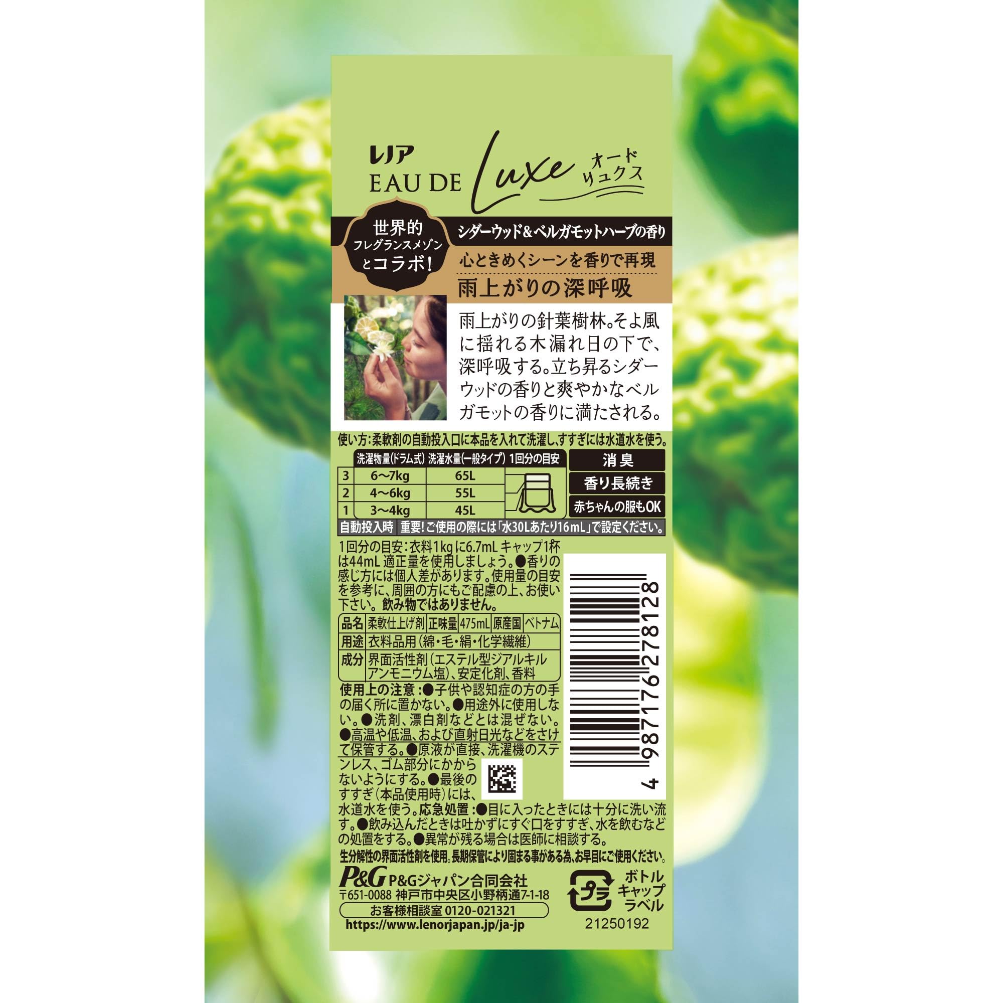 レノア Lenor オードリュクス 柔軟剤 シダーウッド&ベルガモットハーブの香り 本体 475mL