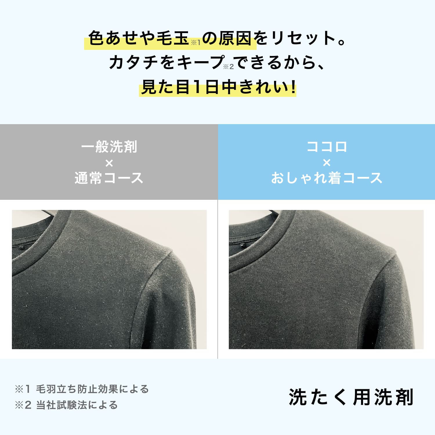 ●洗うことで、買った時の見た目と着心地(=自分らしさ)を維持してくれるファーファココロ洗たく用洗剤●着用による色あせダメージをリセット(※1)…着用中に発生する毛羽立ちをカットして白化現象(=色あせ)を防止するという新しいメカニズムで、色あせによる衣類のダメージをリセットします。